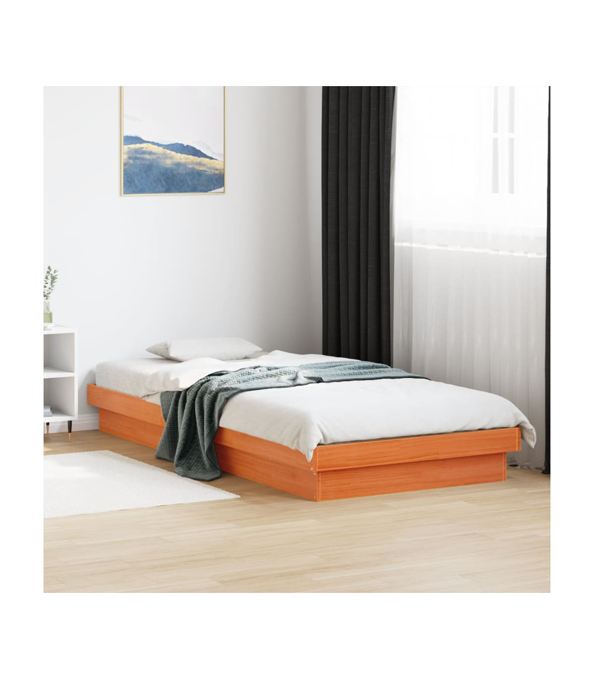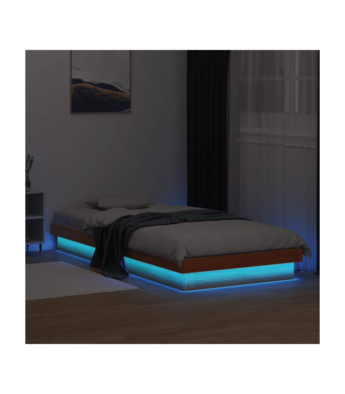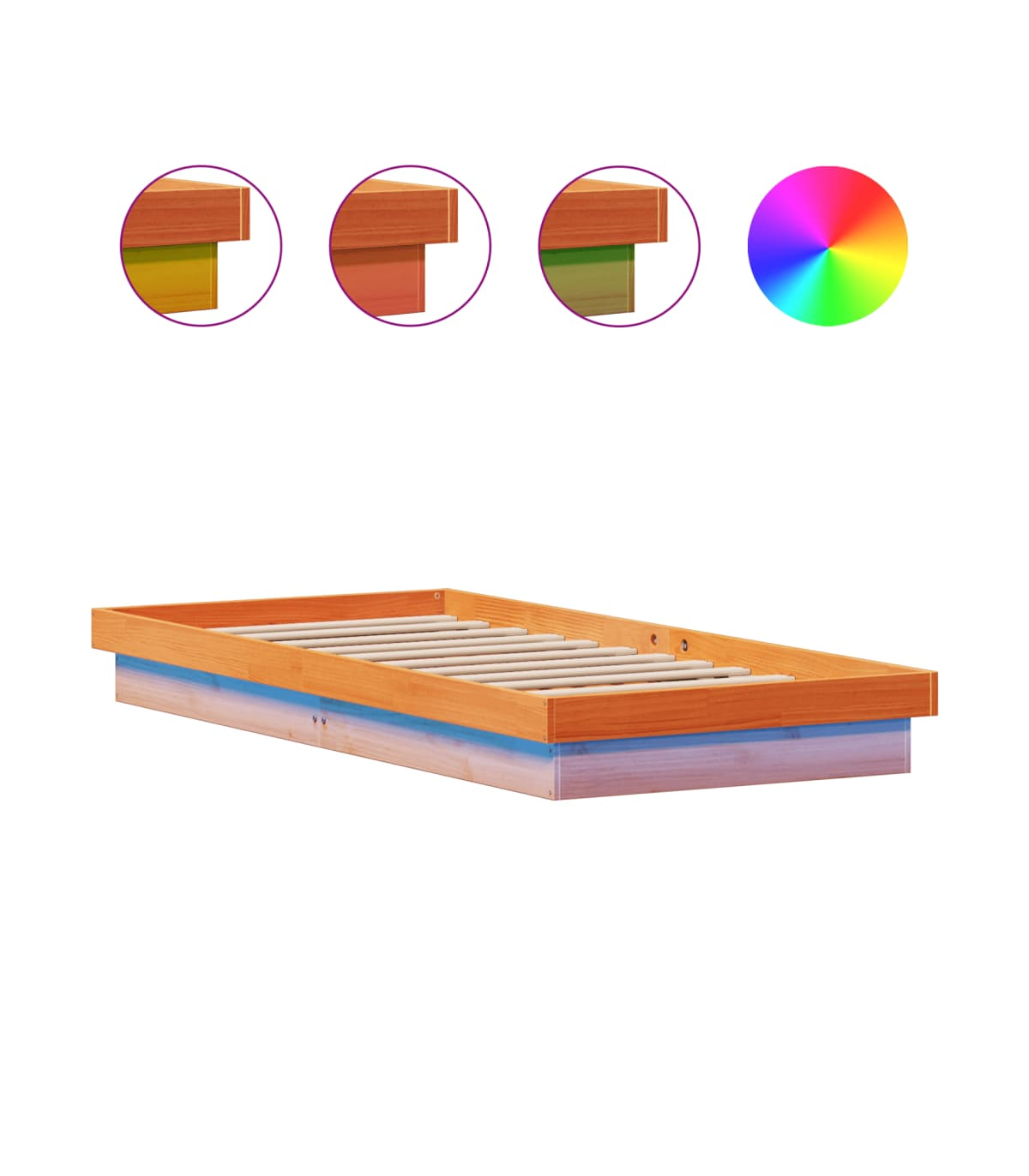 This classic bed frame with colourful LED lights is meant to become the focal point of your bedroom. Solid pine wood: Solid pine wood is a beautiful natural material. Pine wood has a straight grain, and the knots give the material its signature, rustic look.Sturdy and stable frame: The wooden frame ensures sturdiness and stability.Sturdy slats: The plywood slats provide good weight distribution, ensuring that the mattress stays in place with every twist and turn of your body during sleep.RGB LED lights: This wooden bed features RGB LED lights, which have different menus to change the colour of lights and let the colour adjust automatically. Good to know:A mattress is not included with this bed. We do offer a various selection of mattresses. You can check our shop for a matching mattress.The product has a USB connector that requires a certified 5V USB power source (not included).