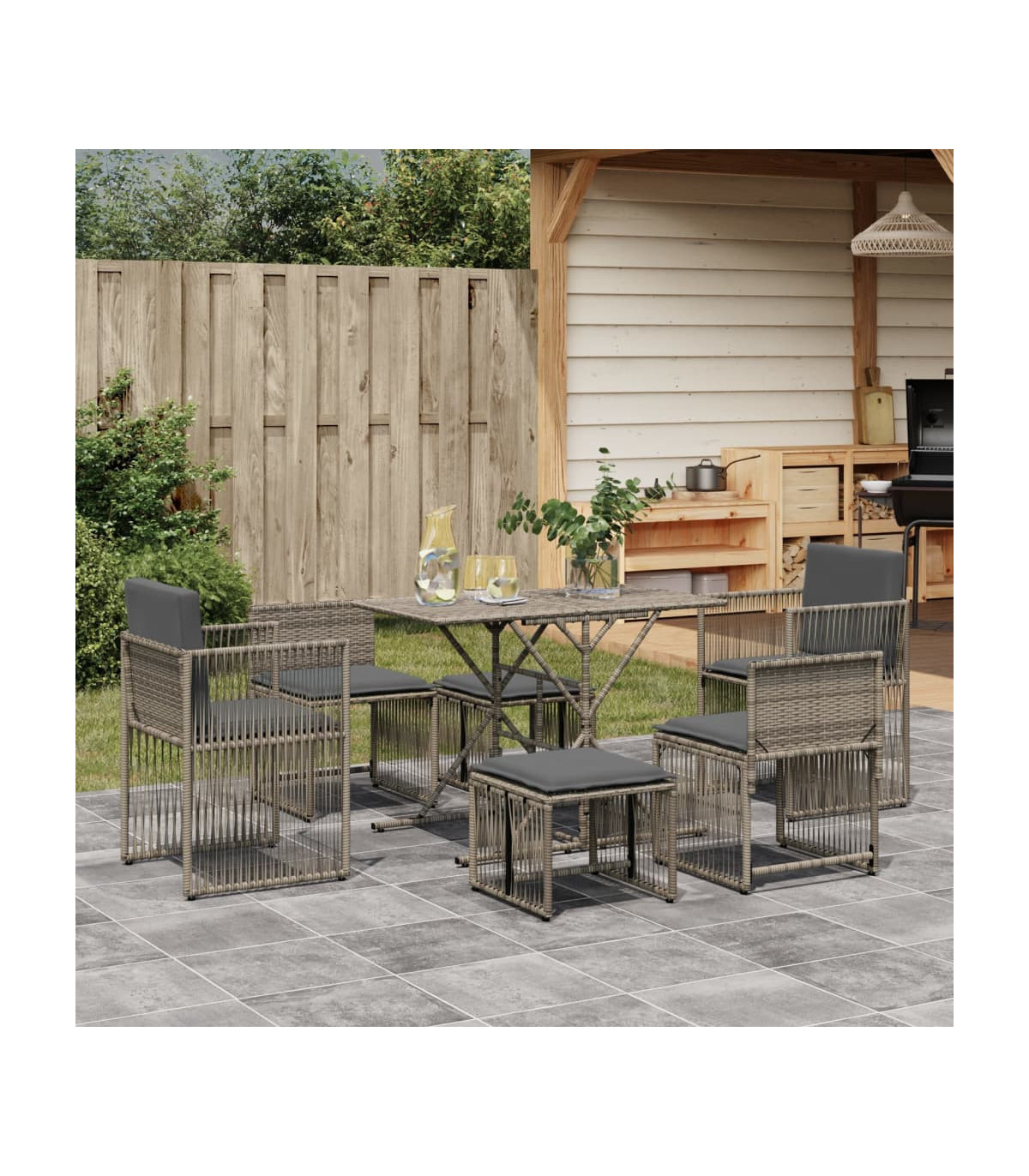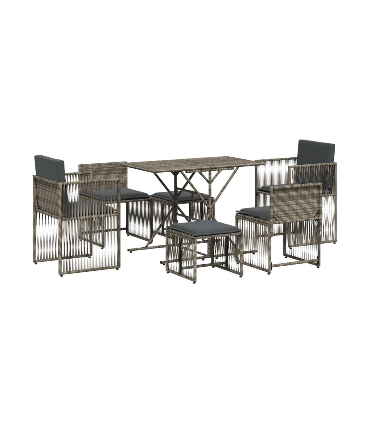 vidaXL 7 Piece Garden Dining Set with Cushions Grey Poly Rattan