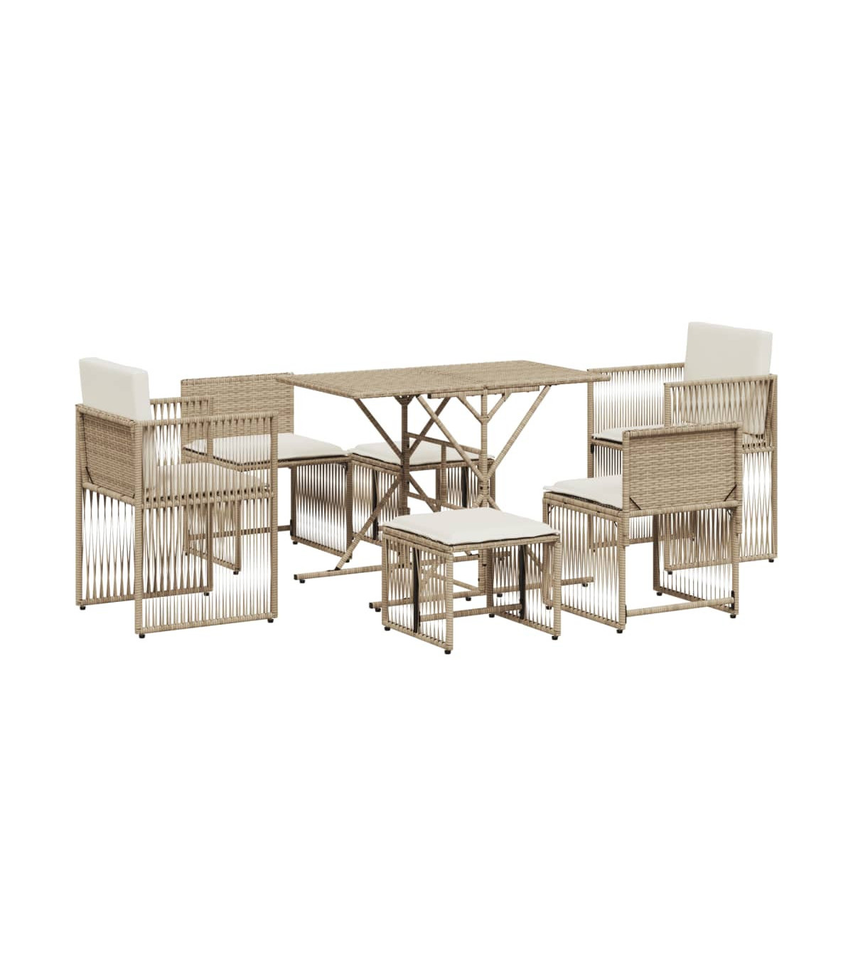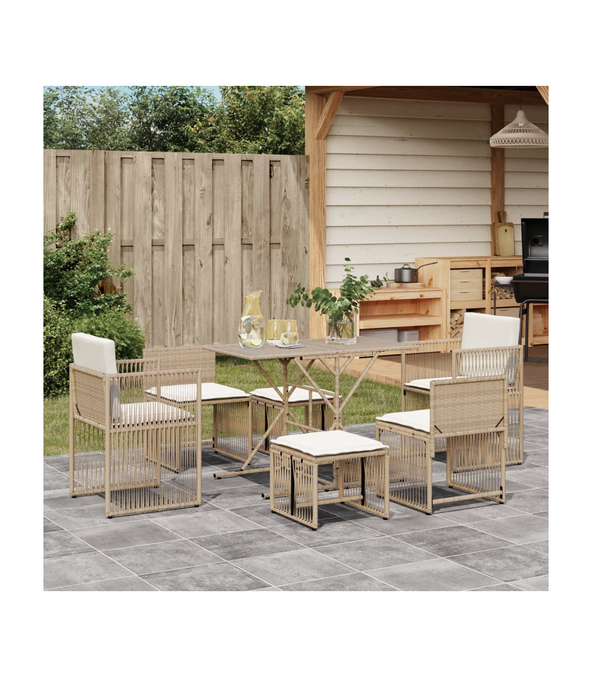 vidaXL 7 Piece Garden Dining Set with Cushions Beige Poly Rattan