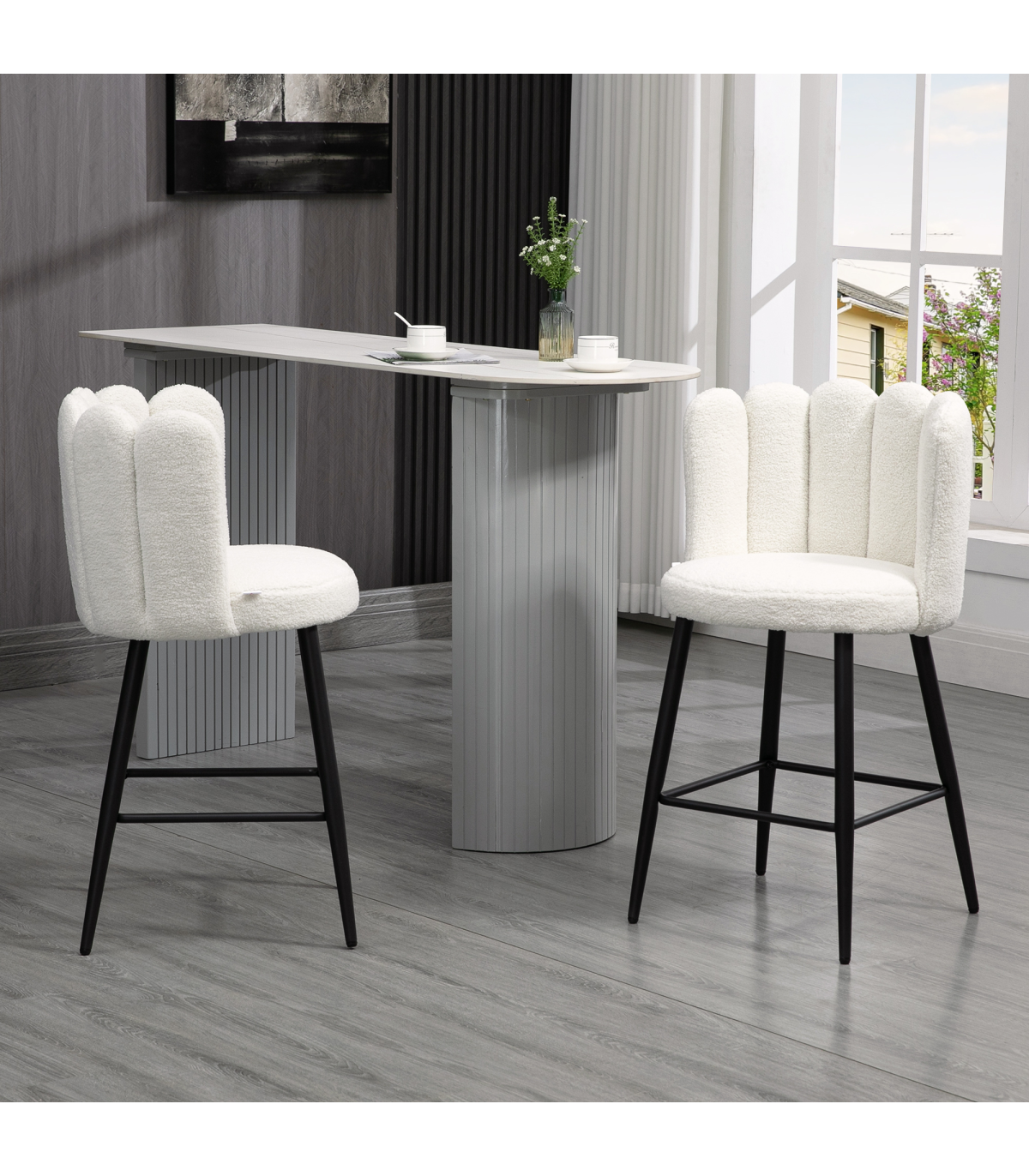 ● Packaged in a set of 2, ideal for having a cosy drink for two ● Soft faux cashmere filled with thick foam to relax the body ● Lower footrest prevents legs from dangling around ● Sturdy steel legs give you support to maintain a stable position ● Solid steel base with adjustable foot pad keeps the island chairs balanced when in use ● Assembly required ● Colour: Cream White ● Material: Faux Cashmere (Polyester), Steel, Sponge ● Overall Dimension: 52W x 53D x 93Hcm ● Seat Size: 47W x 45Dcm ● Seat Height: 65cm ● Back Size: 52W x 31.5Hcm ● Footrest to Floor: 23Hcm ● Suitable for Bar Table Height: 95cm ● Weight Capacity: 120 kg ● Item Label: 835-921V70CW