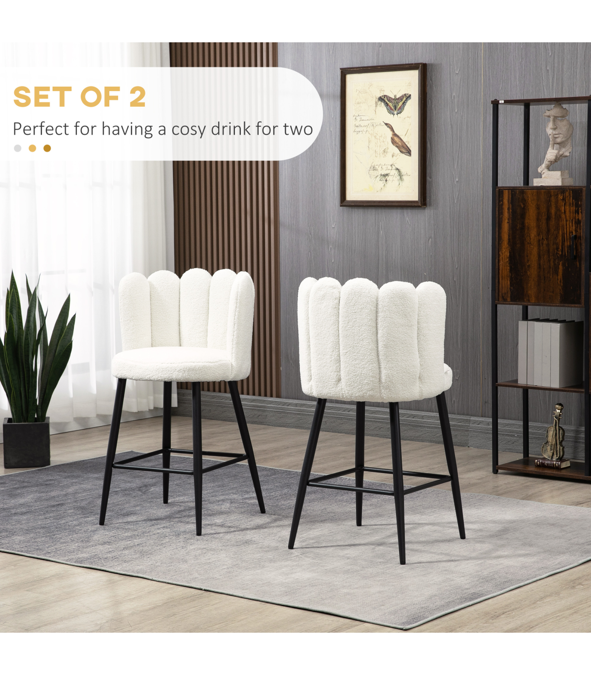 HOMCOM Bar Stools Set of 2, Breakfast Barstools with Backs, Cream