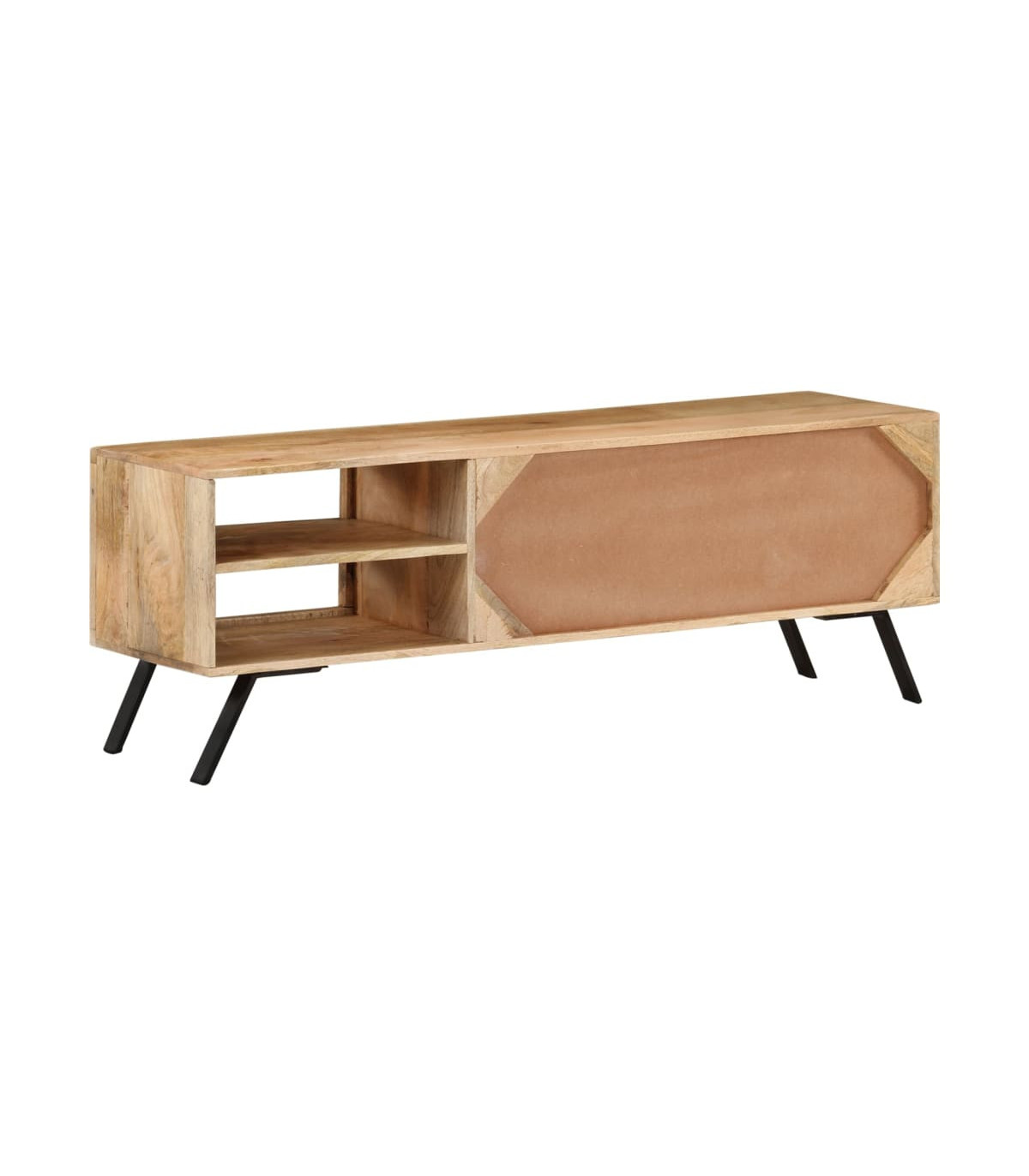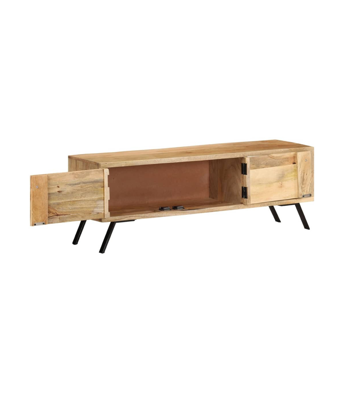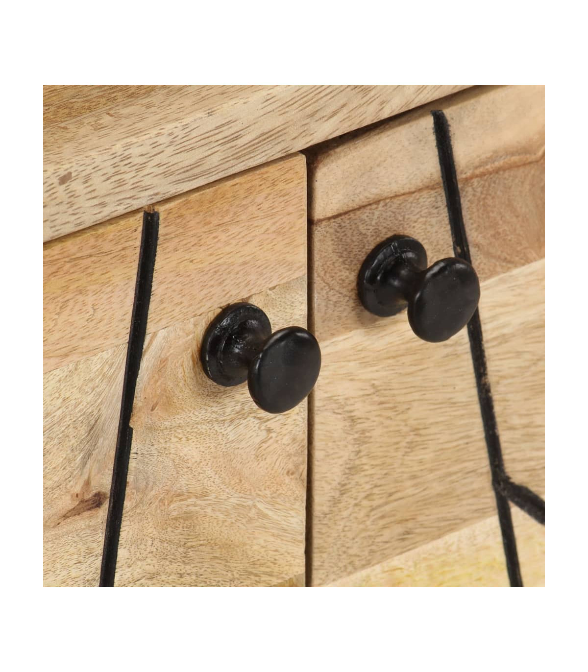 - Material: Solid mango wood with a natural bleach finish, black powder-coated iron