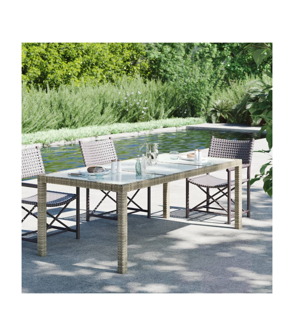 Combining both style and function, this poly rattan garden table will surely be the centerpiece of your garden, patio or any other living space. Featuring a powder-coated steel frame wrapped with poly rattan, the outdoor table is sturdy and stable. In addition, the tabletop is made of tempered glass, making it easy to clean. Thanks to the lightweight construction, the garden table is easy to move. Note: In order to extend the life of your outdoor furniture, we recommend you to clean it regularly and do not leave it outdoors without protection unnecessarily.Clean: Use a mild soap solution.Storing: If possible, store in a cool, dry place indoors. If the product is stored outdoors, protect it with a waterproof cover. Wipe and dry the excess water or snow from flat surfaces after a rain or snowfall. Allow sufficient air circulation to avoid moisture-related damage.