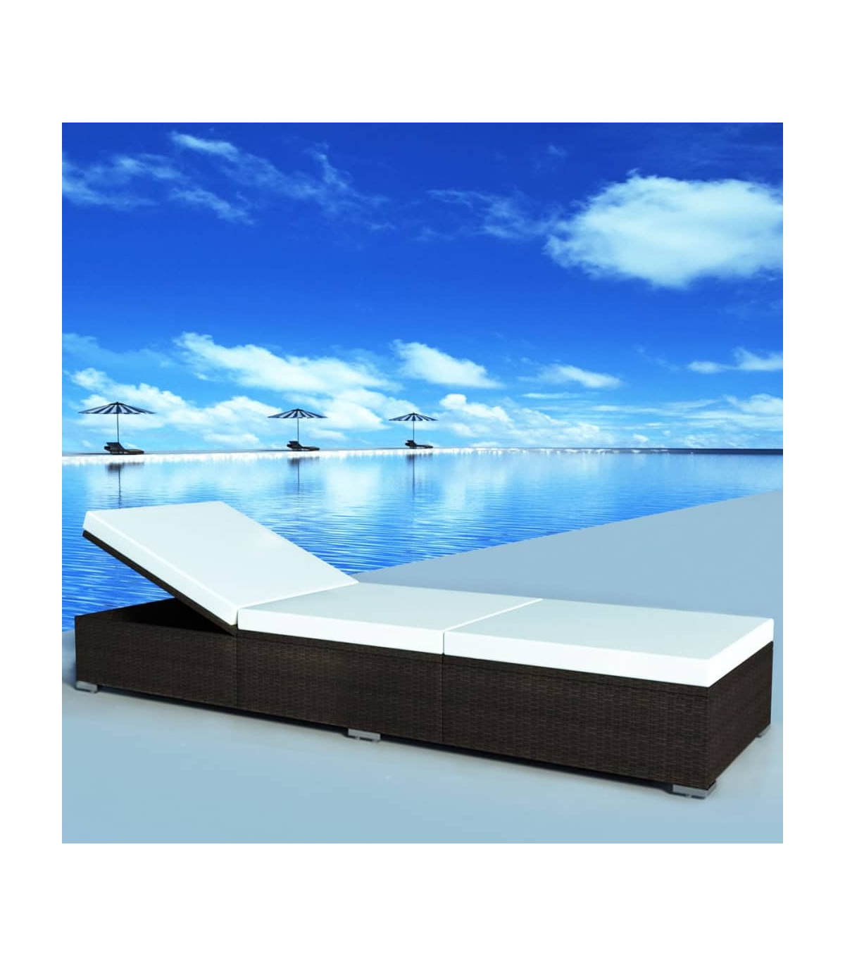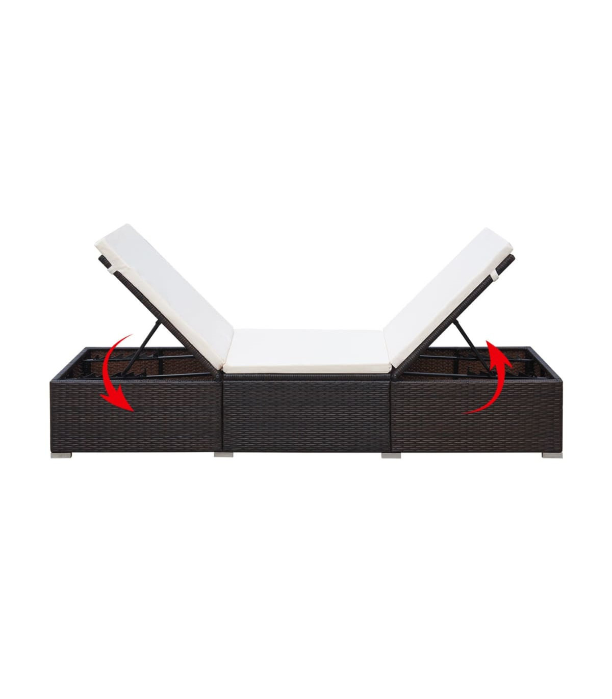 This poly rattan sun lounger combines style and functionality, and will become the focal point of your garden or patio! Thanks to the water-resistant PE rattan, the sunbed is easy to clean, hard-wearing and suitable for daily use. The chaise lounge chair features a powder-coated steel frame, making it very stable and durable. Both sides of the sunbed can be pulled up and adjusted in different settings for the most comfortable seating or lying position. The thickly-padded, removable cushion will provide the ultimate comfort. Thanks to the zipped design, the fabric cushion cover is removable for easy washing. Note: In order to extend the life of your outdoor furniture, we recommend you to clean it regularly and do not leave it outdoors without protection unnecessarily.Clean: Use a mild soap solution.Storing: If possible, store in a cool, dry place indoors. If the product is stored outdoors, protect it with a waterproof cover. Wipe and dry the excess water or snow from flat surfaces after a rain or snowfall. Allow sufficient air circulation to avoid moisture-related damage.