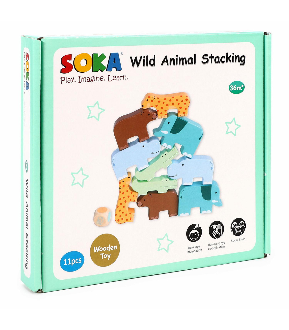WOODEN SENSORY 3D PUZZLE MONTESSORI TOY: SOKA makes beautifully constructed toddler Montessori toys like this Wild Animal Stacking toy. The three main play factors across this collection are shape sorting, balancing animals, and imaginative play.