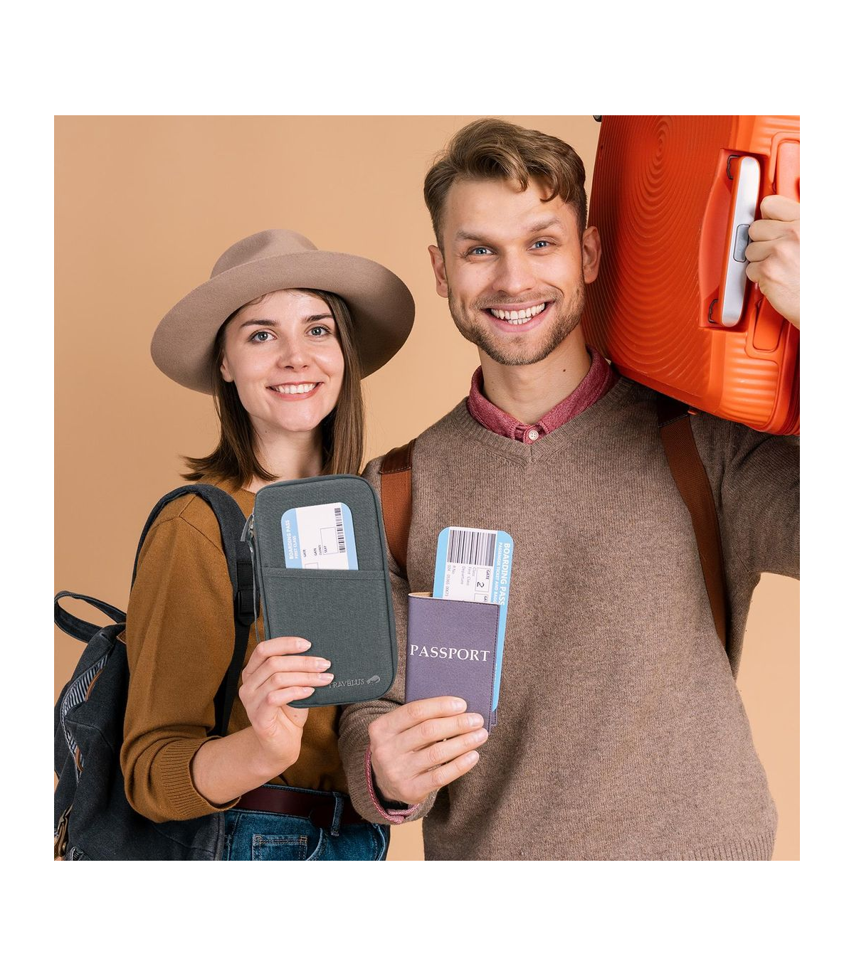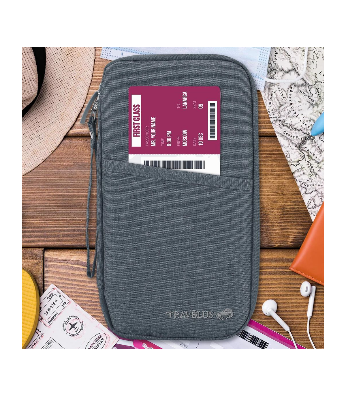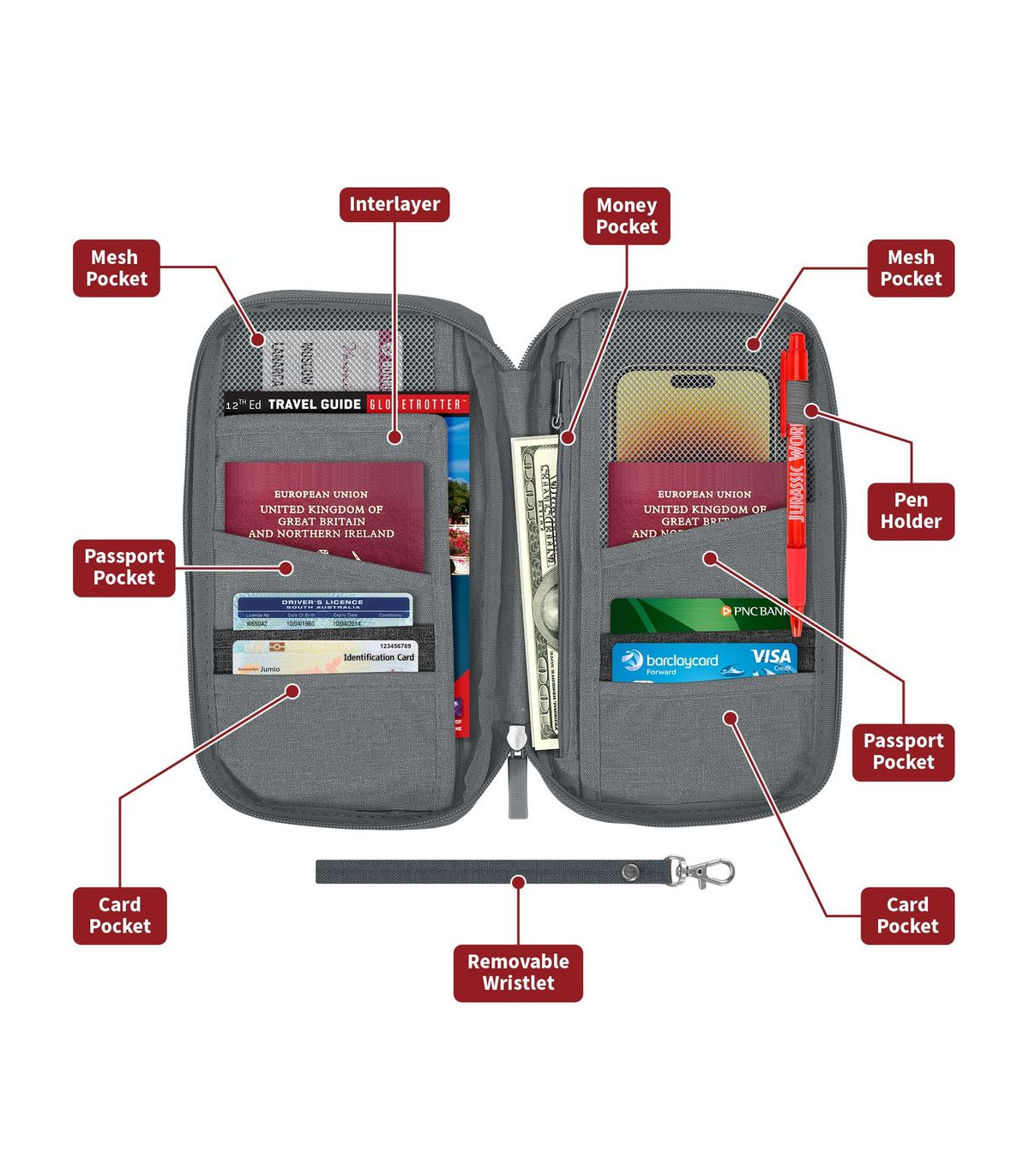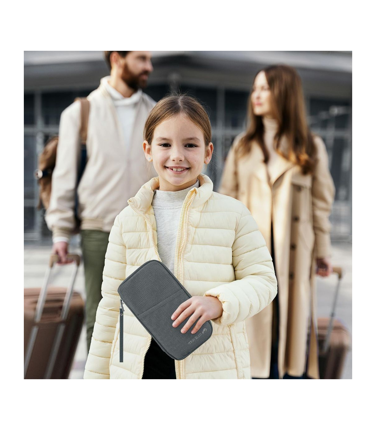 Vinsani Family Travel Holiday Wallet Passport Holder & Document Organiser Case Men Women for Tickets, ID Card, Credit Cards, Currency Holder-Grey