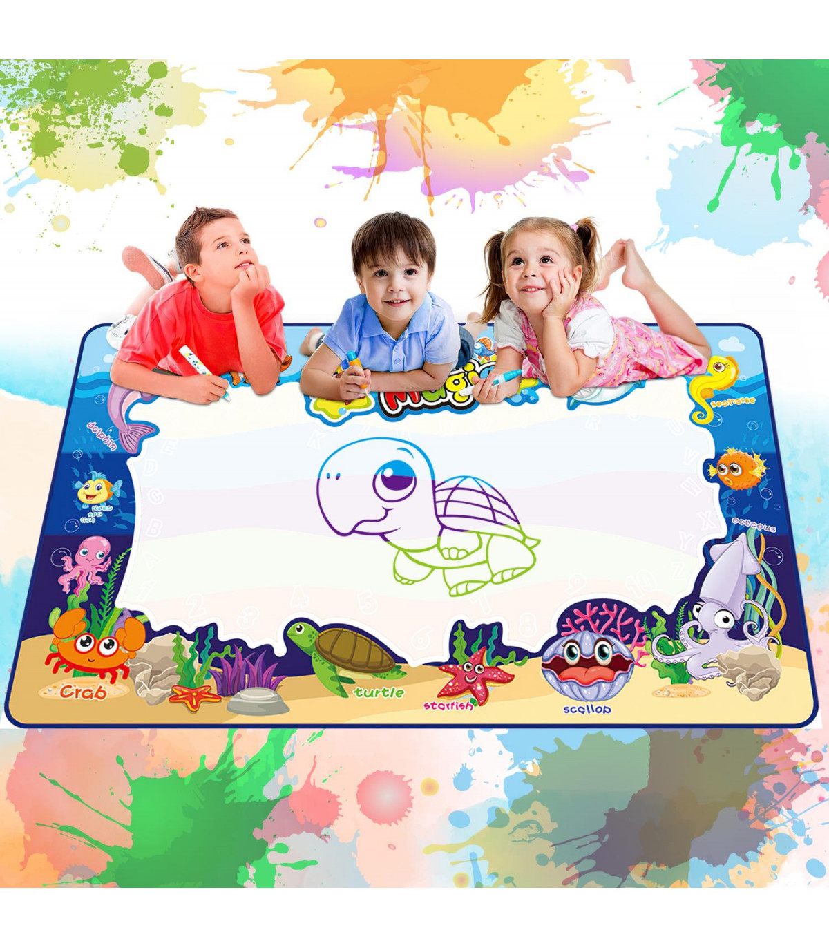 Non-TOXIC AND ECO-FRIENDLY MATERIAL: This doodle mat is made of high-quality durable polyester non-woven fabric. The back of the doodle mat is made of water-resistant PVC material for stress free, clean painting sessions. spoiling the walls, just filled with clean water in magic pen to start drawing. Cleaning and safety.