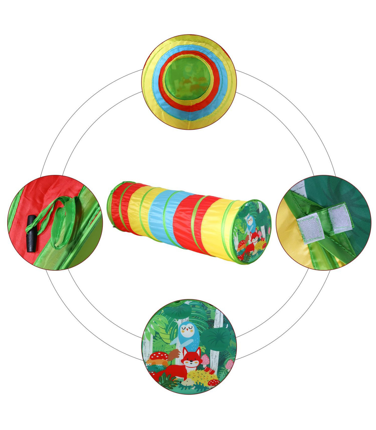 THEMED TUNNEL: Crawling through the tunnels are a blast! Your child can crawl, slide and wiggle in the play tunnel for hours of fun. FOLDABLE: Take it with you on holidays, family visits or to the beach. It can be folded away neatly for storage and comes with a carry bag. ENDLESS FUN: This tunnel stimulates imagination while helping to develop motor skills. The play tunnel features a unique design and the colours coordinates with the tunnel. EASY SETUP: This play tunnel is fast and easy to set up, no assembly required. Suitable for indoor and outdoor play. DIMENSIONS: Foldable play tent measures L46 x W46 x H140 cm Approx. Suitable for 12 months and over