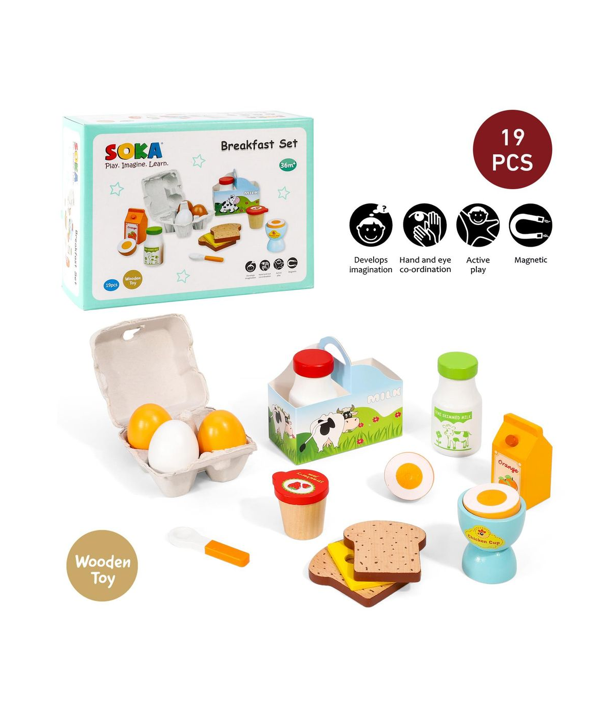 EDUCATIONAL DEVELOPMENT TOY: This pretend food playset is sure to spark children's imaginations. Allow children to think for themselves when playing, encourage them to imitate, enhance their imitation and practical abilities, grow their communication skills when playing with family or other children, and boost their intellectual development. Solid wooden pieces are perfectly sized for toddlers' little hands and help promote fine motor skills and dexterity.