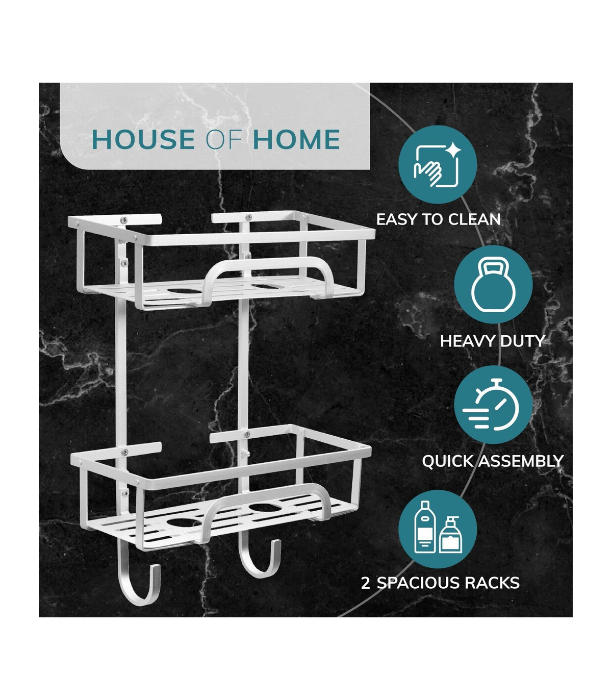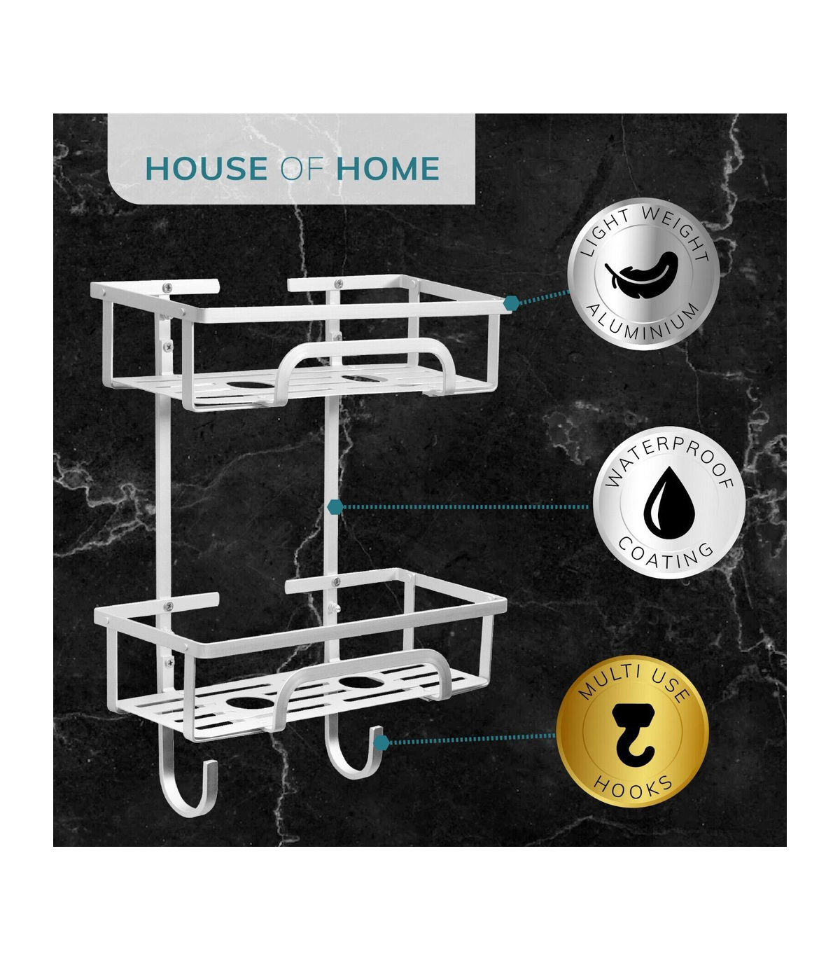 Self Adhesive 2 Tier Aluminium Shower Caddy with Bottom Hooks