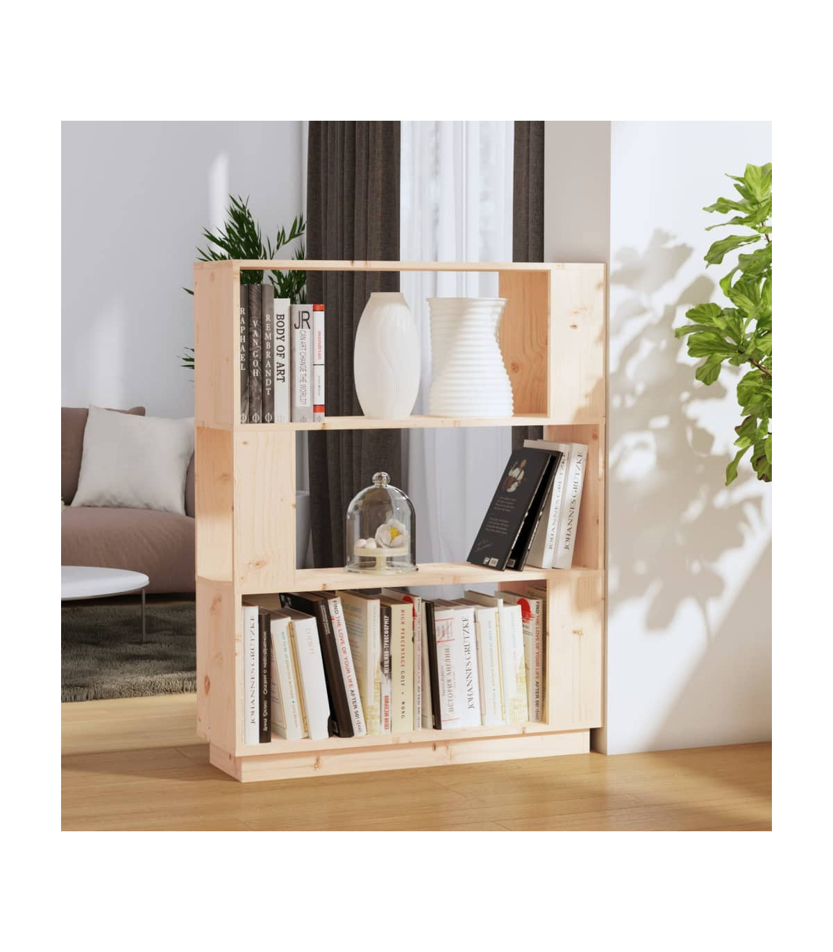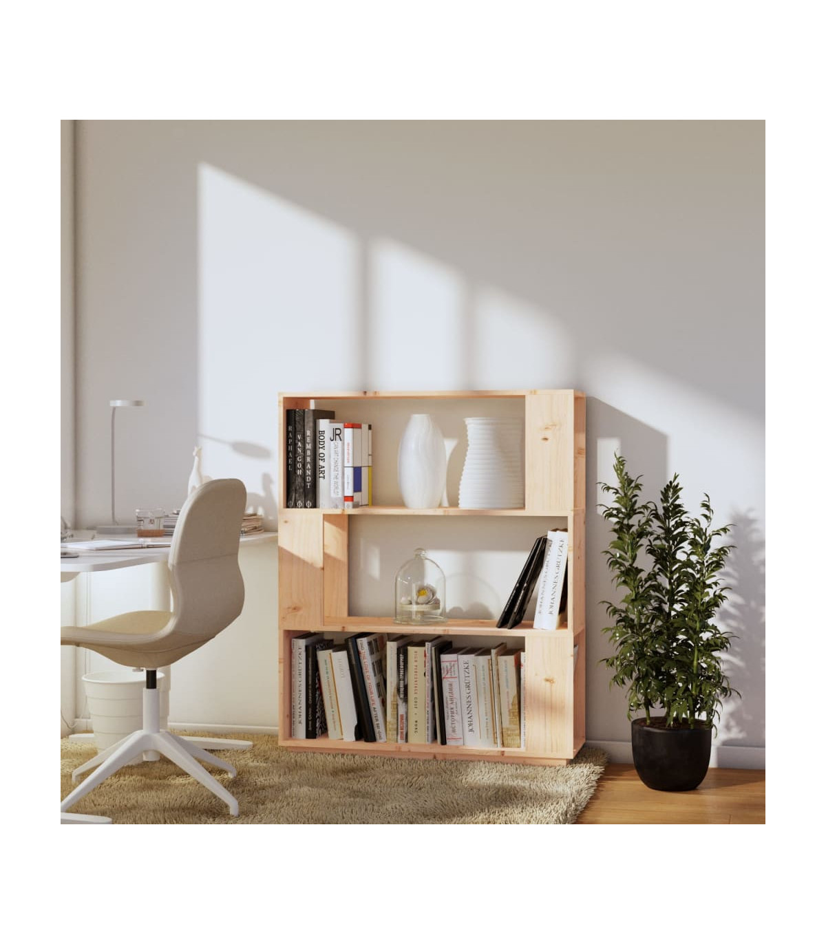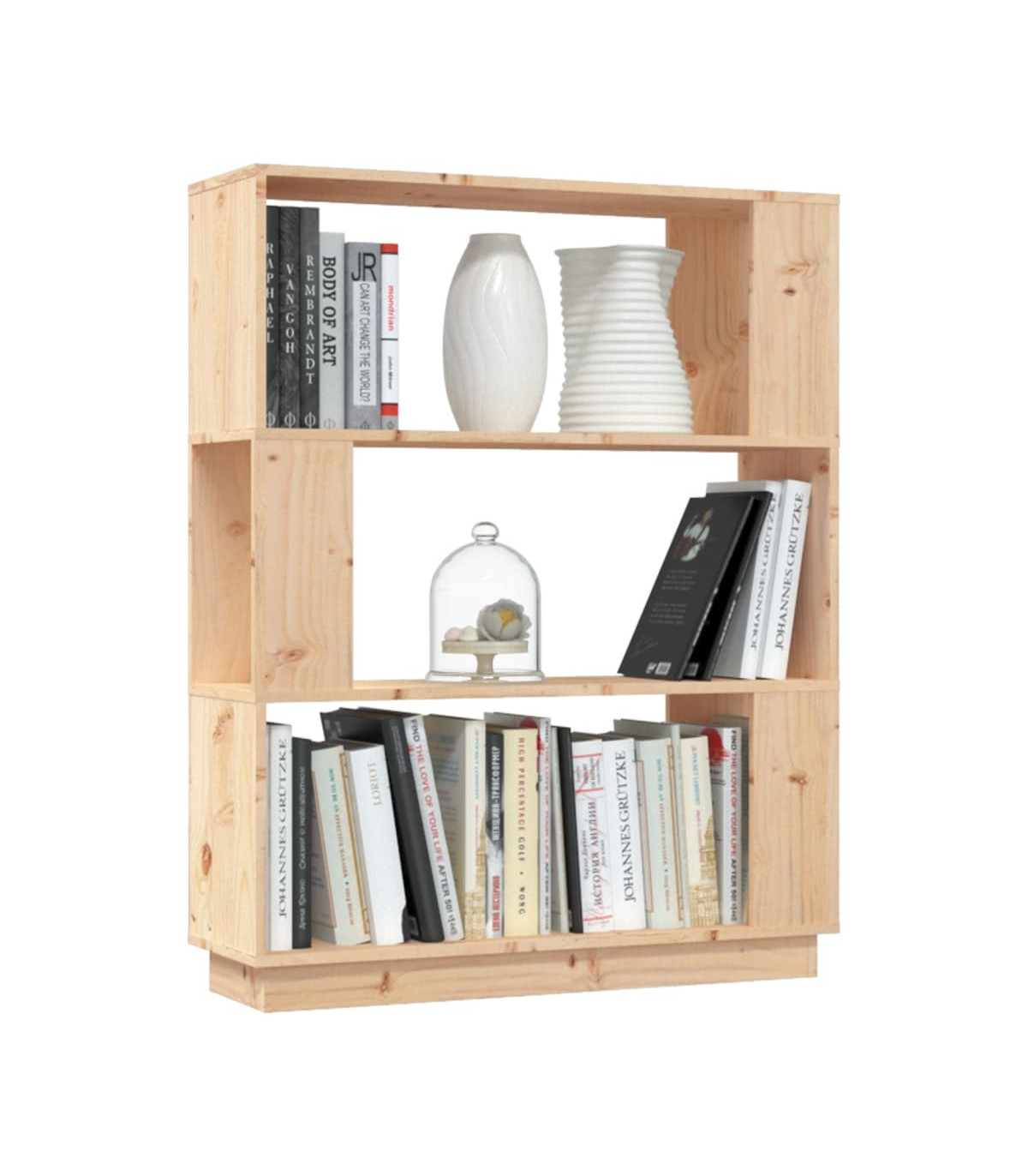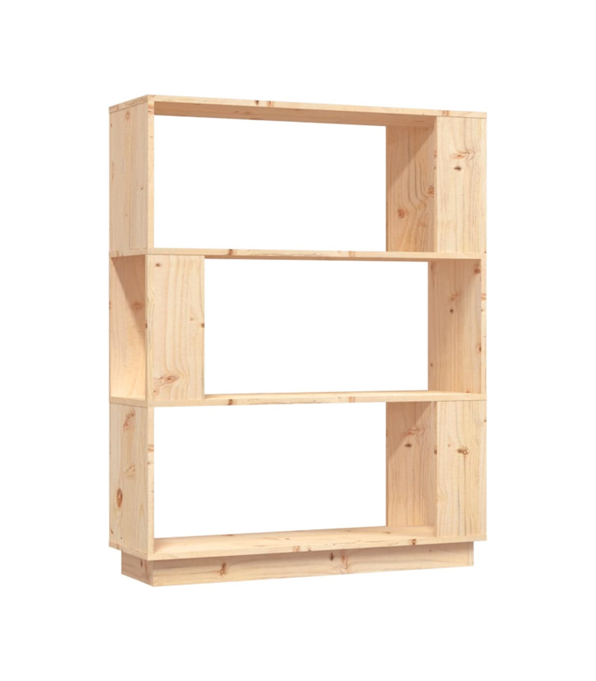 This versatile wooden book cabinet will be a decorative yet practical addition to your home decor. It can also be used as a room divider. Durable frame: Solid pine wood is a beautiful natural material. Pine wood has a straight grain, and the knots give the material its signature, rustic look.Ample storage space: The bookshelf offers ample storage space for keeping your magazines, books, DVDs, multimedia devices and other decorative items well organised and within reach.Versatile shelf: It can serve as a room divider as well, making it a perfect choice for your hallway and any other living space. Additionally, the shelf has no backside so the front and back are both beautiful. Warning:In order to prevent overturning, this product must be used with the wall attachment device provided.