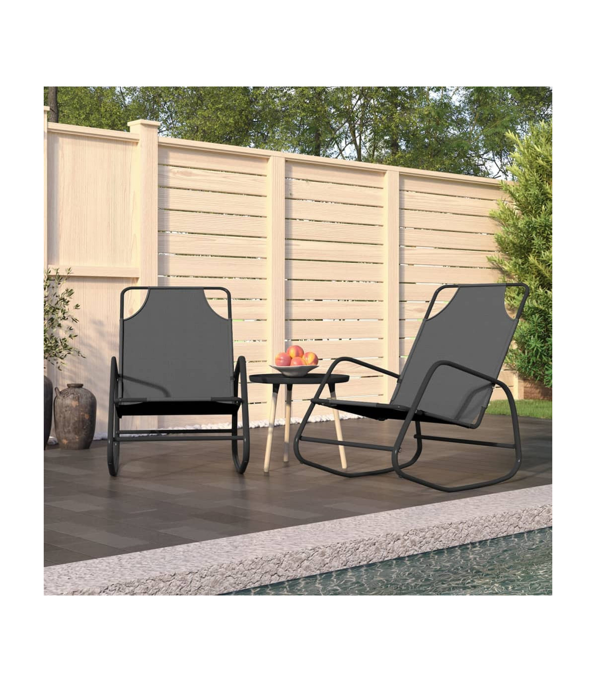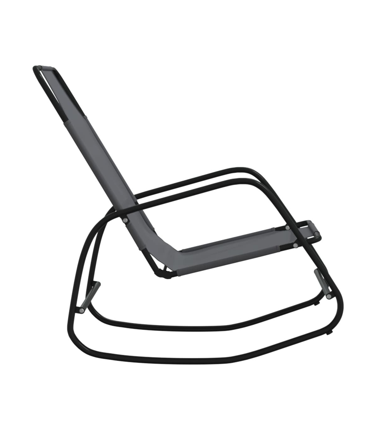 Take a breather from your hectic daily life on this handy rocking sun lounger! This rocking chair is an excellent leisure and holiday companion for you to relax and enjoy. Quality fabric: The mesh textilene surface is breathable, ensuring good air circulation and prevents sweat build-up. It is also easy to clean with a damp cloth.Rocking legs: Relax by sitting comfortably while enjoying a calming, gentle rocking motion.Strong frame: The swing lounger is made of powder-coated steel, which makes it rust-resistant and sturdy.Comfortable design: Featuring a comfortably shaped lying surface, the rocking lounger offers utmost comfort when you swing back and forth. Note:In order to extend the life of your outdoor furniture, we recommend you to clean it regularly and do not leave it outdoors without protection unnecessarily.Clean: Use a mild soap solution.Storing: If possible, store in a cool, dry place indoors. If the product is stored outdoors, protect it with a waterproof cover. Wipe and dry the excess water or snow from flat surfaces after a rain or snowfall. Allow sufficient air circulation to avoid moisture-related damage.