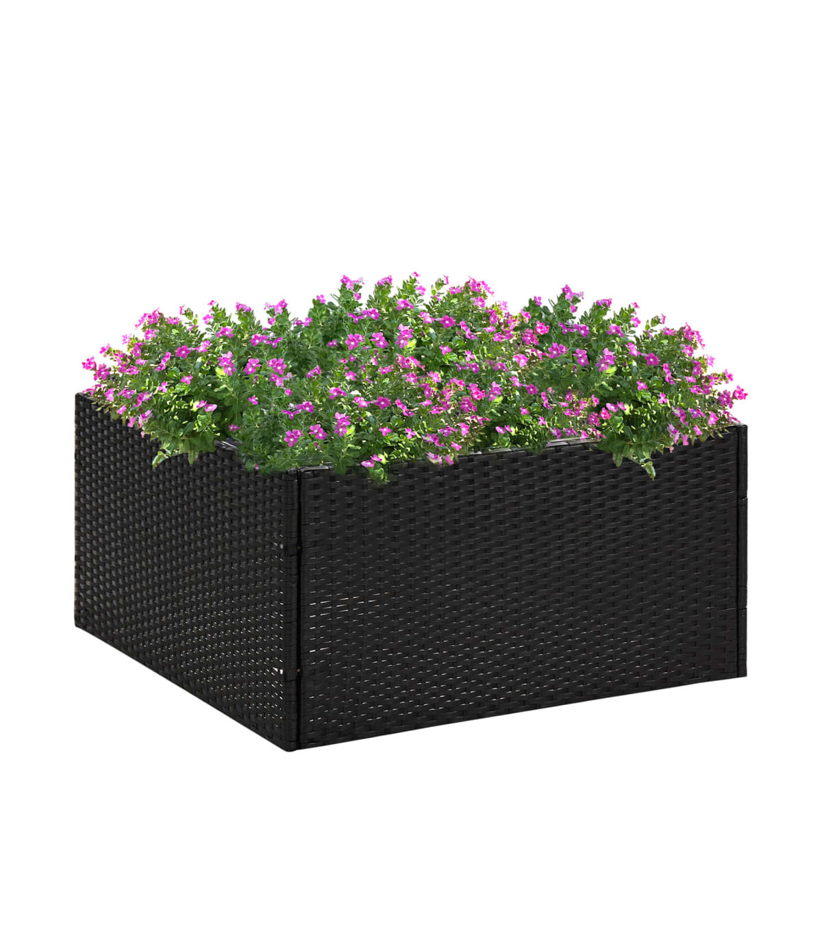 This garden planter is ideal for growing a variety of flowers or plants. Display your favourite flower or plants with this garden planter, adding beauty to your current space! Sturdy frame: This flower bed features a sturdy powder coating steel frame, which is highly durable.Premium material: The patio planter is designed with water-resistant PE rattan, making it easy to clean, hard-wearing, and suitable for daily outdoor use.Transparent nylon bag: This outdoor planter bed includes a transparent inner bag, which keeps soil in place and retains soil moisture.Open bottom design: This planter box has an open bottom design that allows excess water to drain away easily, while also allowing plant roots to extend freely and absorb more nutrients from the soil.Beautiful addition: The planter provides ample space for your flowers and plants. When everything is flourishing, this poly rattan planter will make an eye-catching addition to your garden or yard.