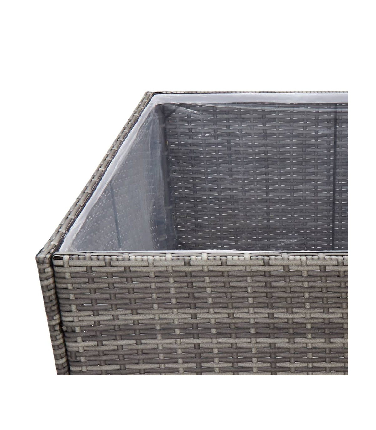 This garden planter is ideal for growing a variety of flowers or plants. Display your favourite flower or plants with this garden planter, adding beauty to your current space! Sturdy frame: This flower bed features a sturdy powder coating steel frame, which is highly durable.Premium material: The patio planter is designed with water-resistant PE rattan, making it easy to clean, hard-wearing, and suitable for daily outdoor use.Transparent nylon bag: This outdoor planter bed includes a transparent inner bag, which keeps soil in place and retains soil moisture.Open bottom design: This planter box has an open bottom design that allows excess water to drain away easily, while also allowing plant roots to extend freely and absorb more nutrients from the soil.Beautiful addition: The planter provides ample space for your flowers and plants. When everything is flourishing, this poly rattan planter will make an eye-catching addition to your garden or yard.