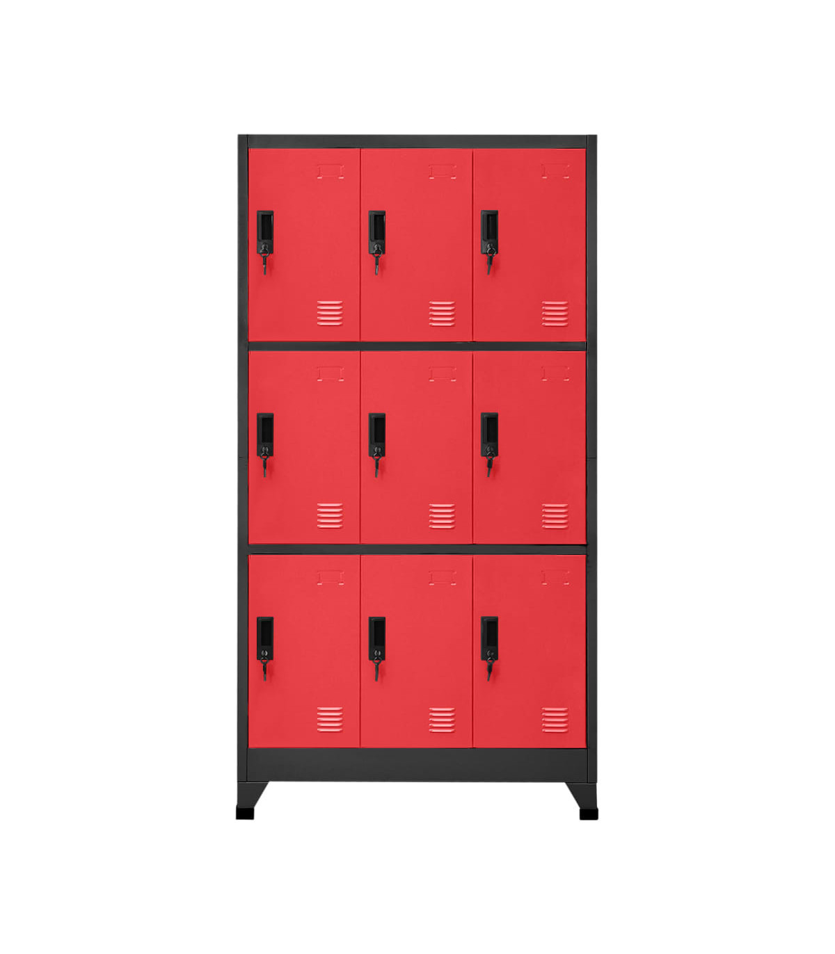 This locker cabinet has a modern design, which will make a great decorative addition to any room or office space. This storage cabinet is made of steel, making it durable as well as easy to clean. Each compartment is euippped with a hanger and a lockable door with air vents. The cabinet has ample storage space for keeping clothes and other personal belongings safe. Additionally, the name tag holder allows you to neatly sort your items. This locker is suitable for schools and offices to store various things.