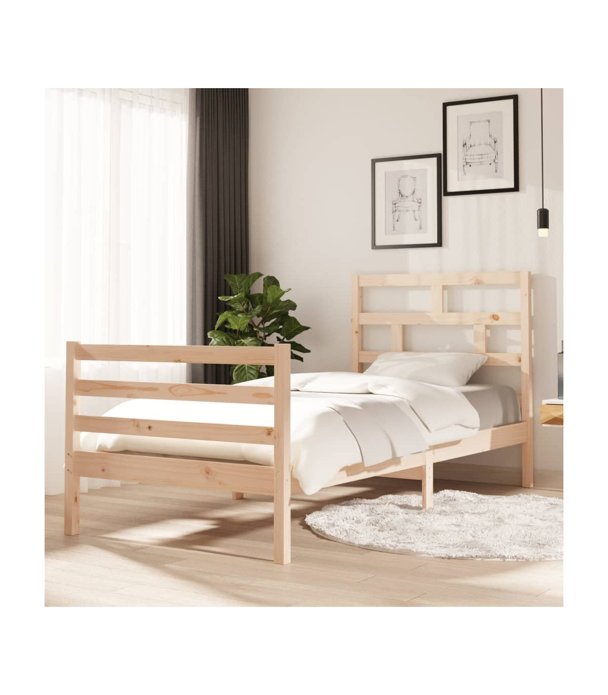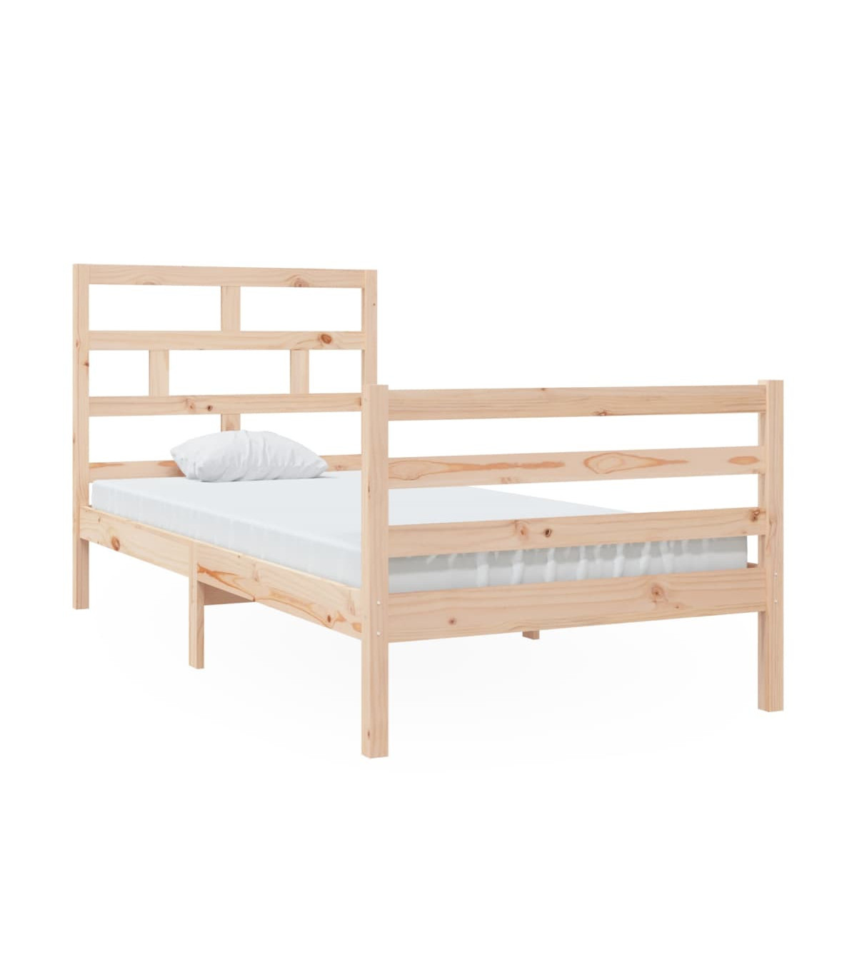 Take the modern route to your bedroom with this wooden bed frame! It makes a practical and decorative addition to your interior. Premium material: Solid pine wood is a beautiful natural material. Pine wood has a straight grain, and the knots give the material its signature, rustic look.Sturdy slats: The plywood slats provide good weight distribution, ensuring that the mattress stays in place with every twist and turn of your body during sleep.Eye-catching design: The headboard and footboard design is both decorative and practical. It adds a unique style and comfort. Good to know:The delivery includes a bed frame only. The mattress is not included. You can check our shop for the matching mattresses.Some headboard parts are packaged in the bed frame cartons due to space limitations.This bed frame is suitable for a mattress measuring 75 x 190 cm (2FT6 Small Single).