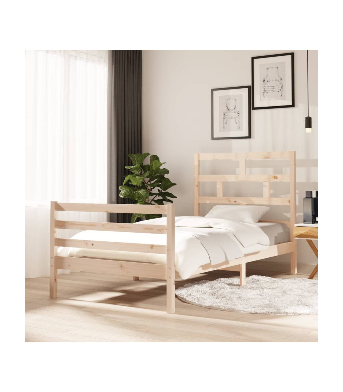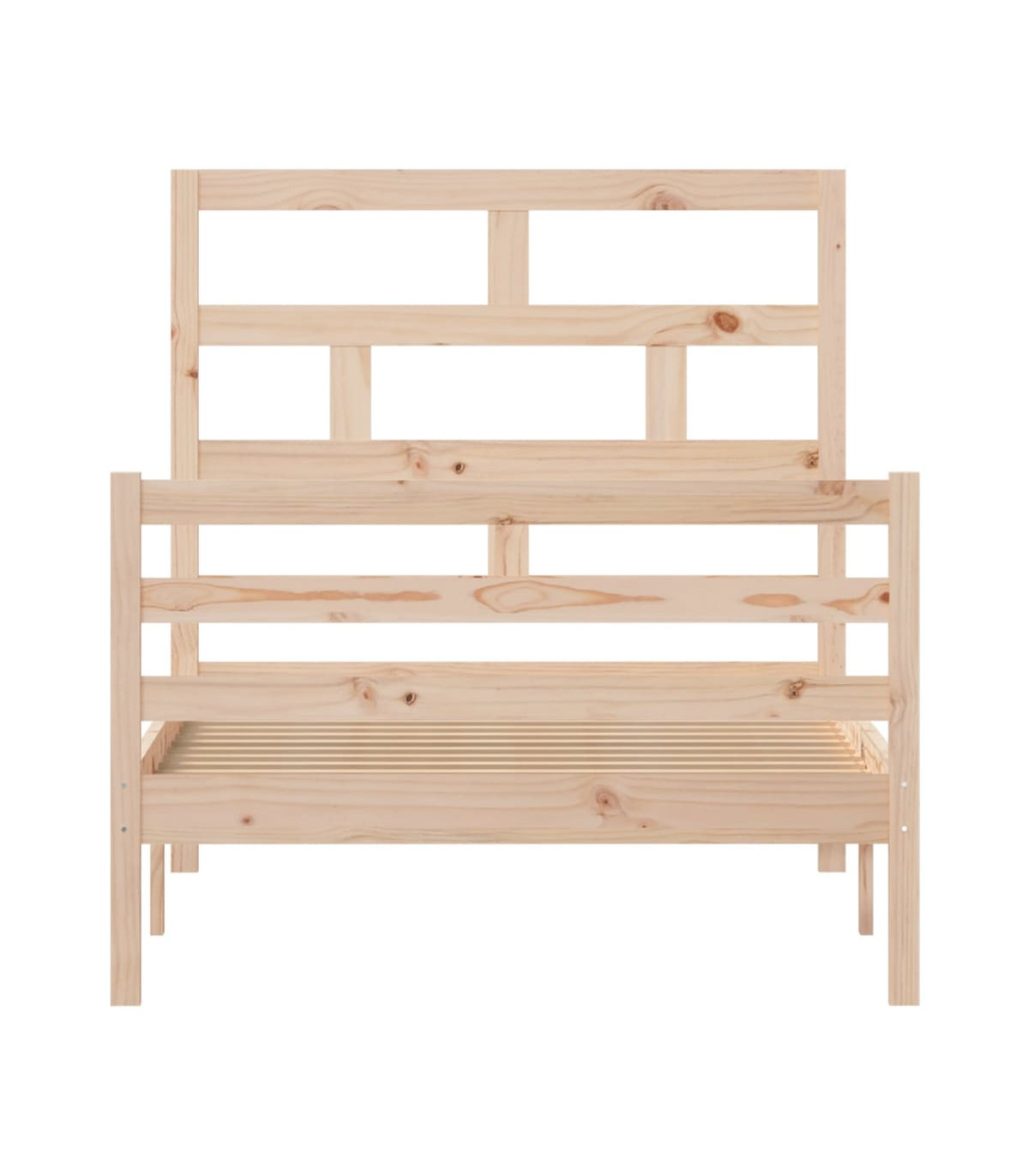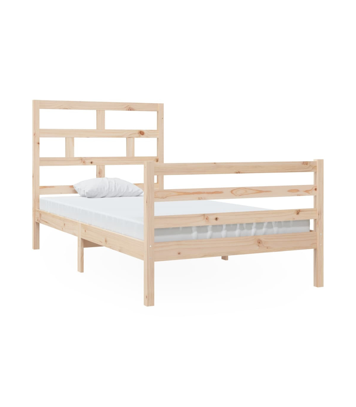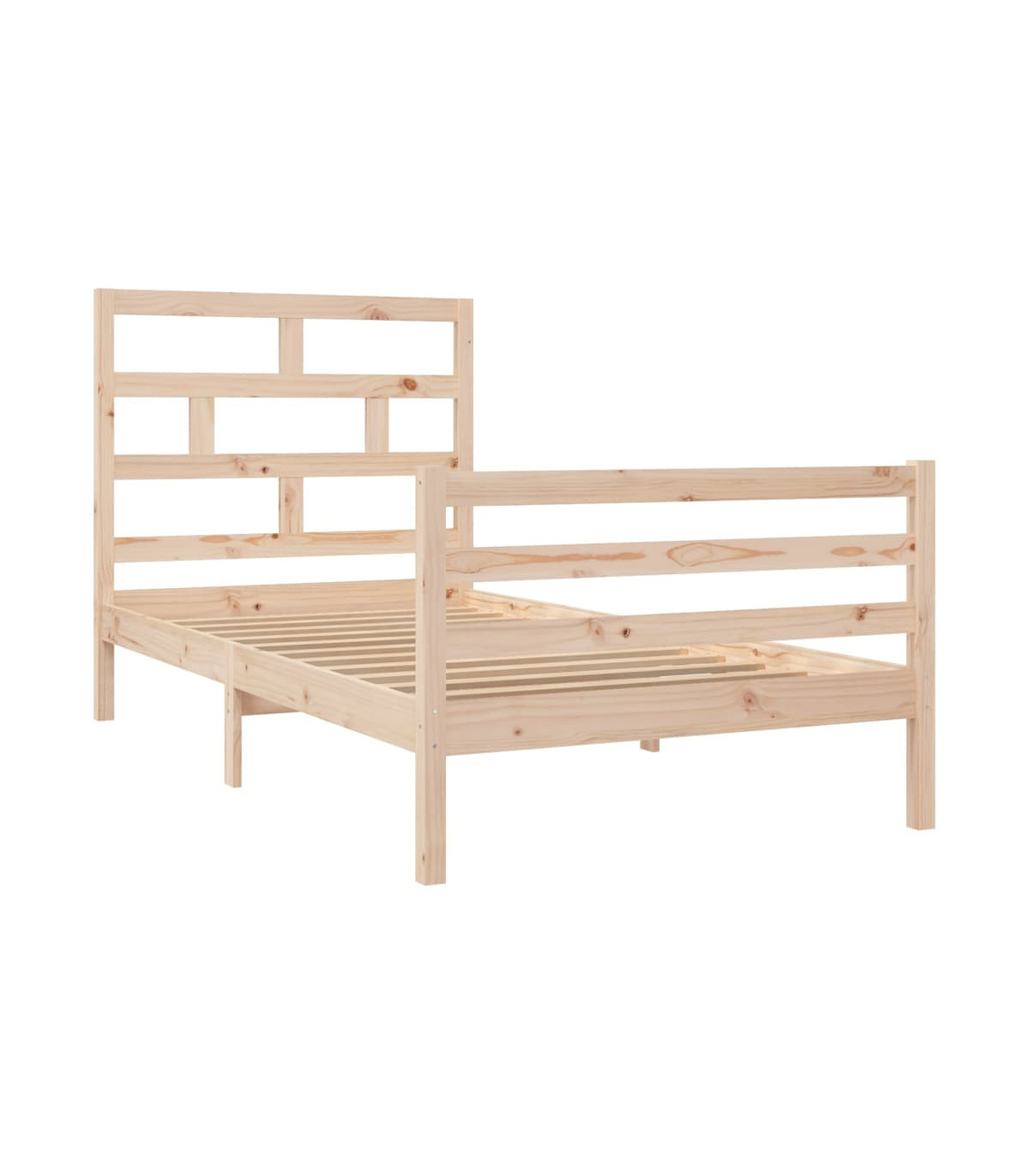 Take the modern route to your bedroom with this wooden bed frame! It makes a practical and decorative addition to your interior. Premium material: Solid pine wood is a beautiful natural material. Pine wood has a straight grain, and the knots give the material its signature, rustic look.Sturdy slats: The plywood slats provide good weight distribution, ensuring that the mattress stays in place with every twist and turn of your body during sleep.Eye-catching design: The headboard and footboard design is both decorative and practical. It adds a unique style and comfort. Good to know:The delivery includes a bed frame only. The mattress is not included. You can check our shop for the matching mattresses.Some headboard parts are packaged in the bed frame cartons due to space limitations.This bed frame is suitable for a mattress measuring 75 x 190 cm (2FT6 Small Single).