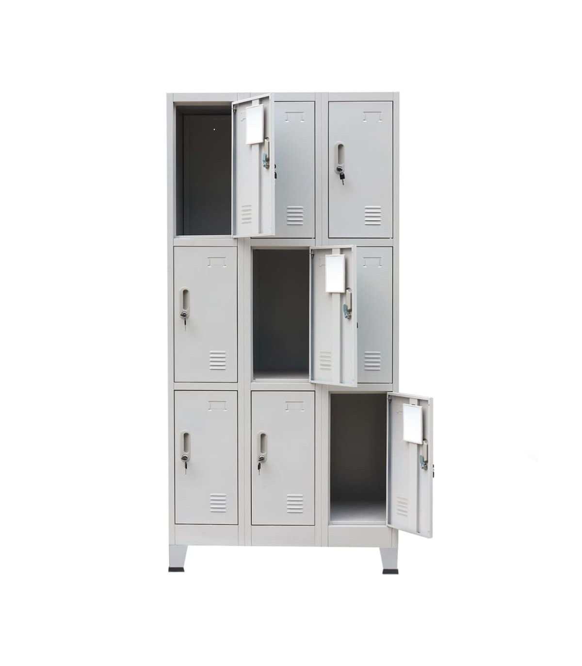 This locker cabinet has a modern design, which will make a great decorative addition to any room or office space. This storage cabinet is made of steel, making it durable as well as easy to clean. Each compartment is euippped with a hanger and a lockable door with air vents. The cabinet has ample storage space for keeping clothes and other personal belongings safe. Additionally, the name tag holder allows you to neatly sort your items. This locker is suitable for schools and offices to store various things.