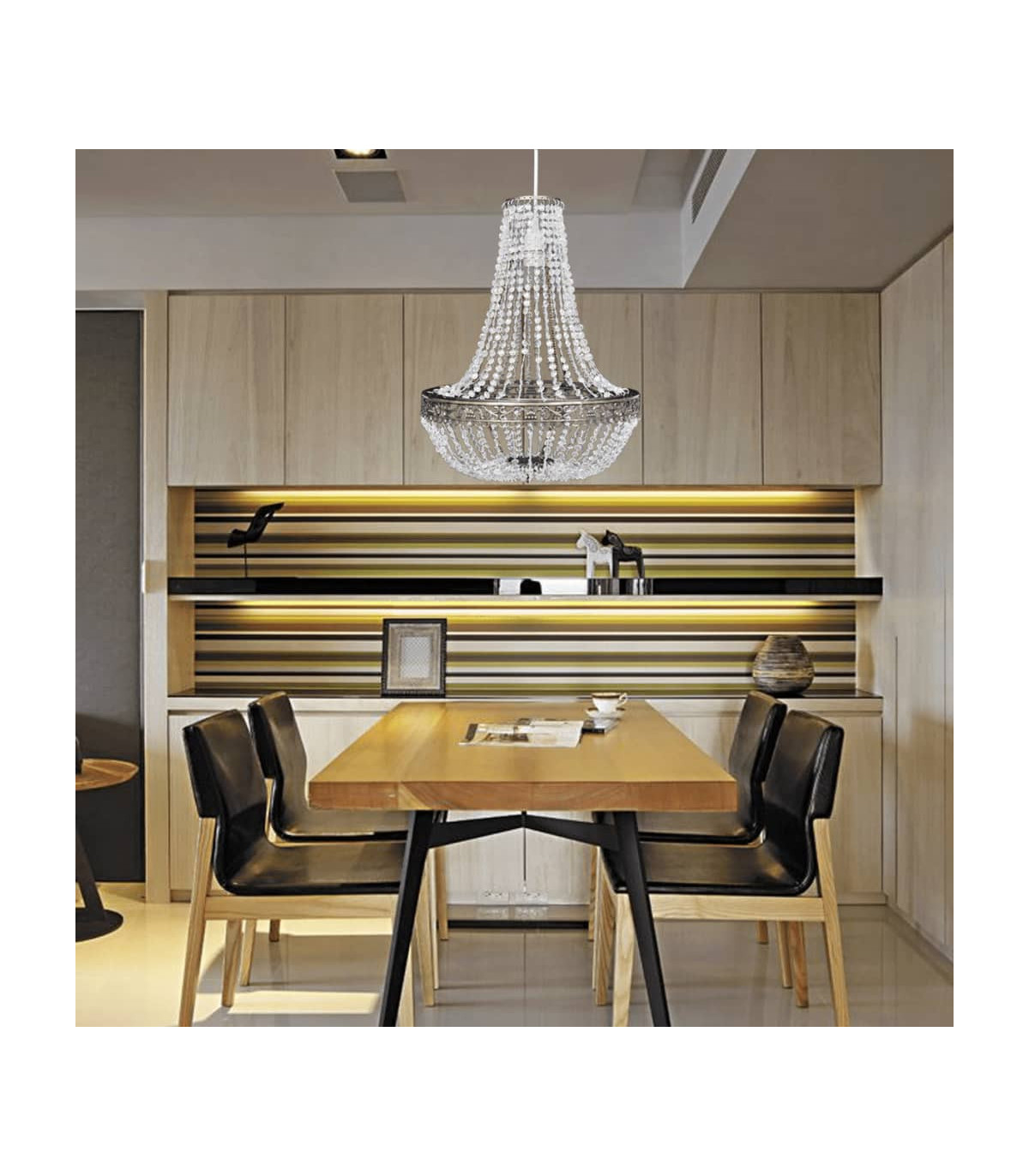 This gorgeous crystal chandelier, with a classic and elegant design, is surely an eye-catcher in any room and is ideal for both private and industrial purposes. Thanks to its royal crystal design, this stunning chandelier is perfect for your foyer, dining room or living room. The high-quality crystal beads, shining with real clarity, will capture and reflect the light effectively, and the spectrum provides you with a magnificent play of colours. With this elegant crystal hanging lamp, you are able to decorate your home in a luxurious way. The bulb is not included in our delivery.