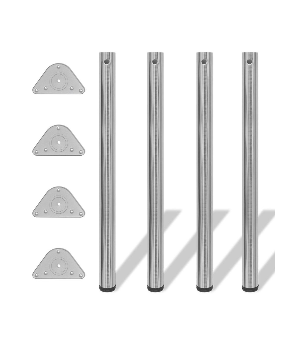 This set includes 4 high-quality table legs which can be used as replacement legs for breakfast bars, tables, worktops, desks, etc. Made of high-quality materials, these table legs are very sturdy and stable. Thanks to the adjustable screw feet, the height of the table legs can be adjusted to compensate for uneven floors. Assembly is very simple and fast.