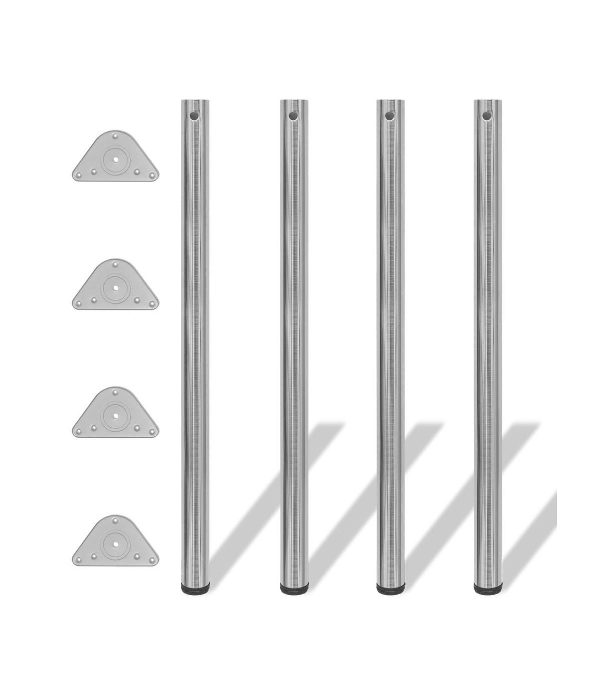 This set includes 4 high-quality table legs which can be used as replacement legs for breakfast bars, tables, worktops, desks, etc. Made of high-quality materials, these table legs are very sturdy and stable. Thanks to the adjustable screw feet, the height of the table legs can be adjusted to compensate for uneven floors. Assembly is very simple and fast.