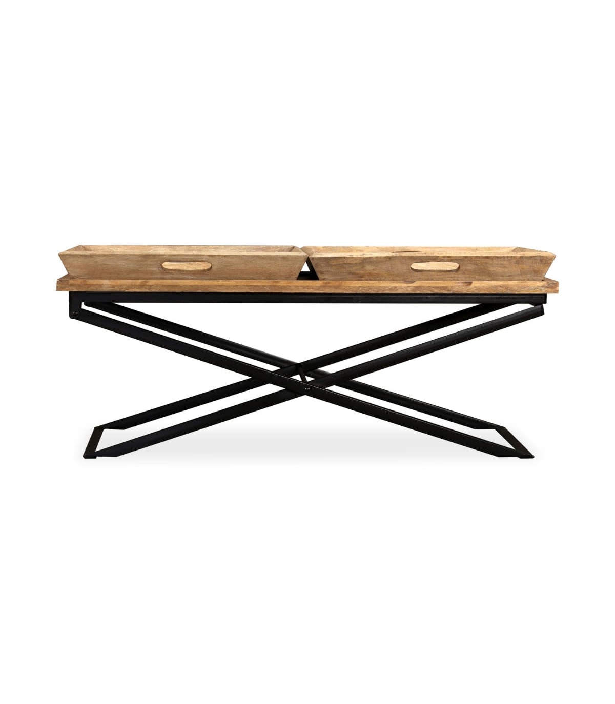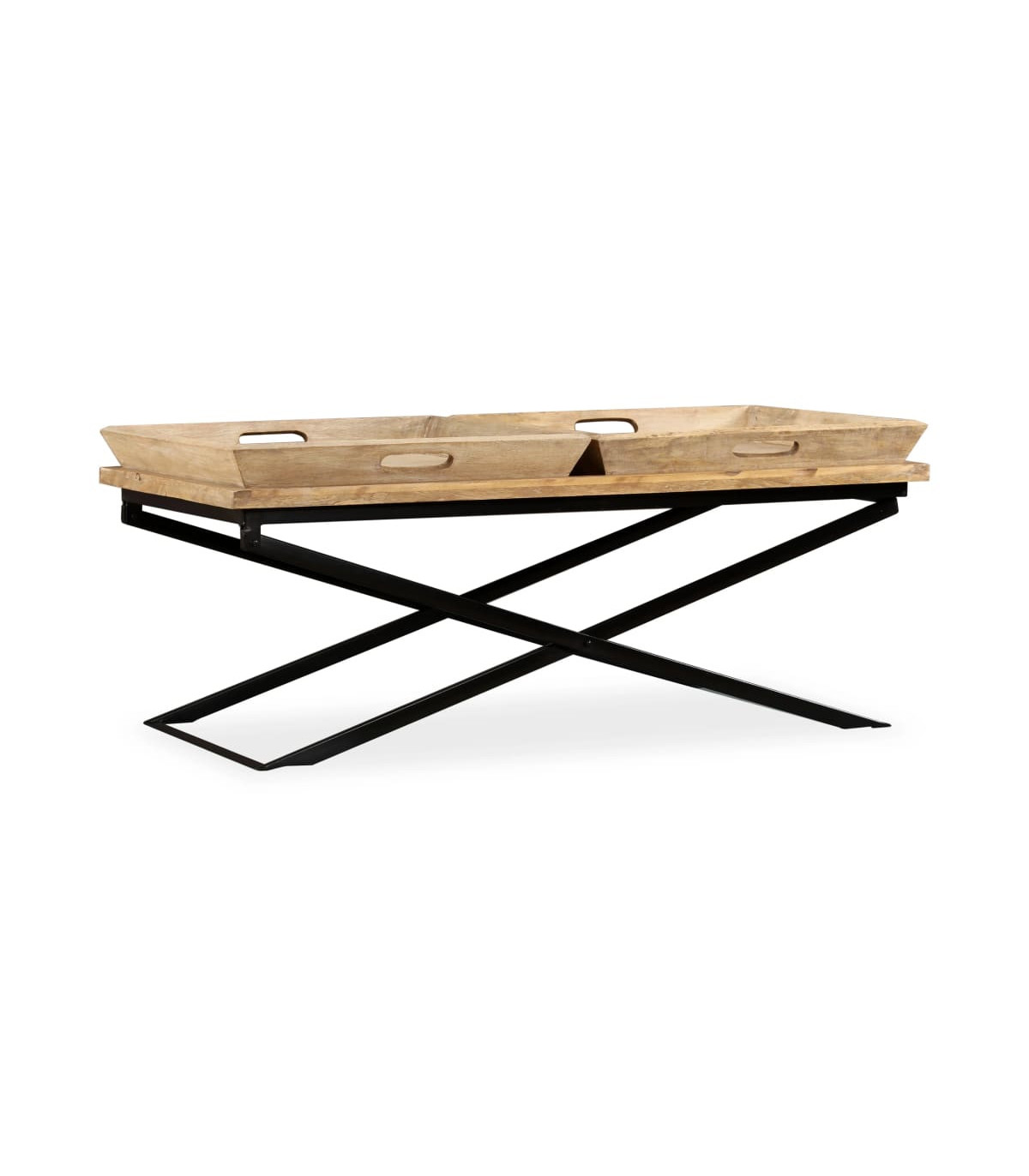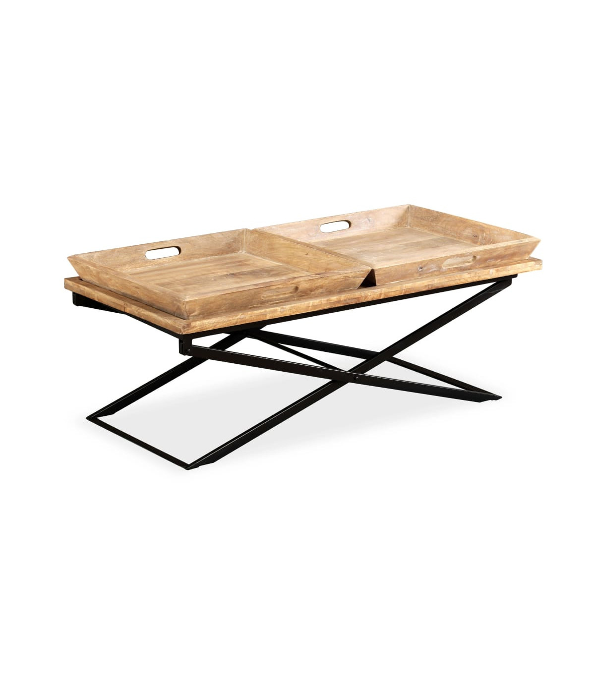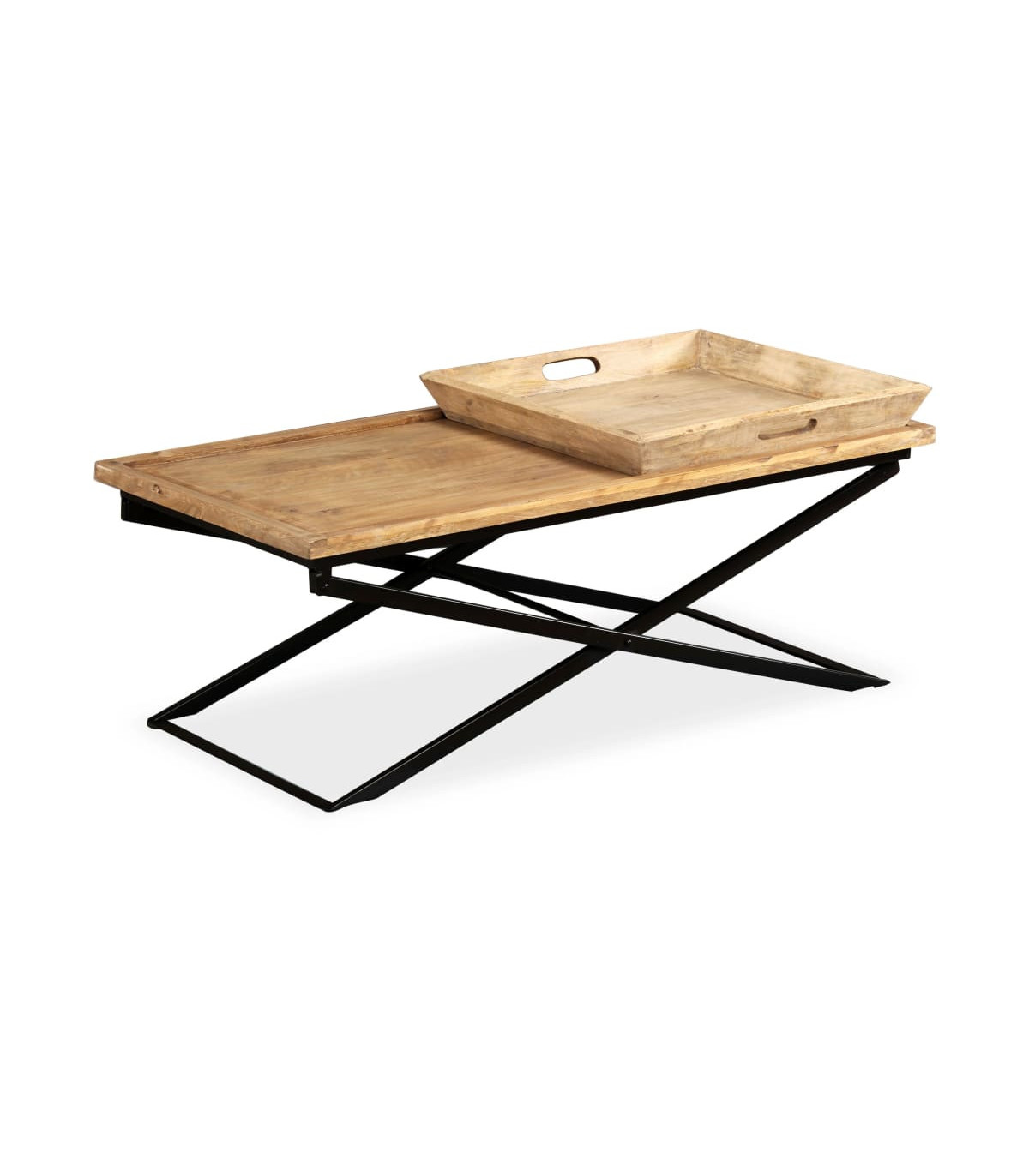 - Material: Solid mango wood tabletop + powder-coated steel legs