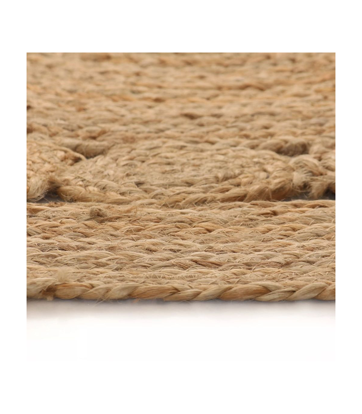 Give your interior a natural touch with this braided jute area rug! It is the perfect choice for decorating your room while protecting your floors. Durable material: The area rug is made of 100% jute. Jute is a very durable and naturally strong material and low maintenance.Handmade rug: The round carpet is handwoven by skilled artisans with exceptional craftsmanship and with its attractive texture and retro design, it will fit perfectly into your home decor.Versatile rug: The mat is versatile enough to be used alone or as a base for layering. The perfect rug to polish off your living room, bedroom or foyer. Note:Each rug is unique; variations in colour and design may occur due to the handmade nature of the product. The delivery is random, ensuring the exclusivity and individuality of your product.The rug is folded in a carton for easy transportation. Please allow the product some time to become perfectly straight and flat.