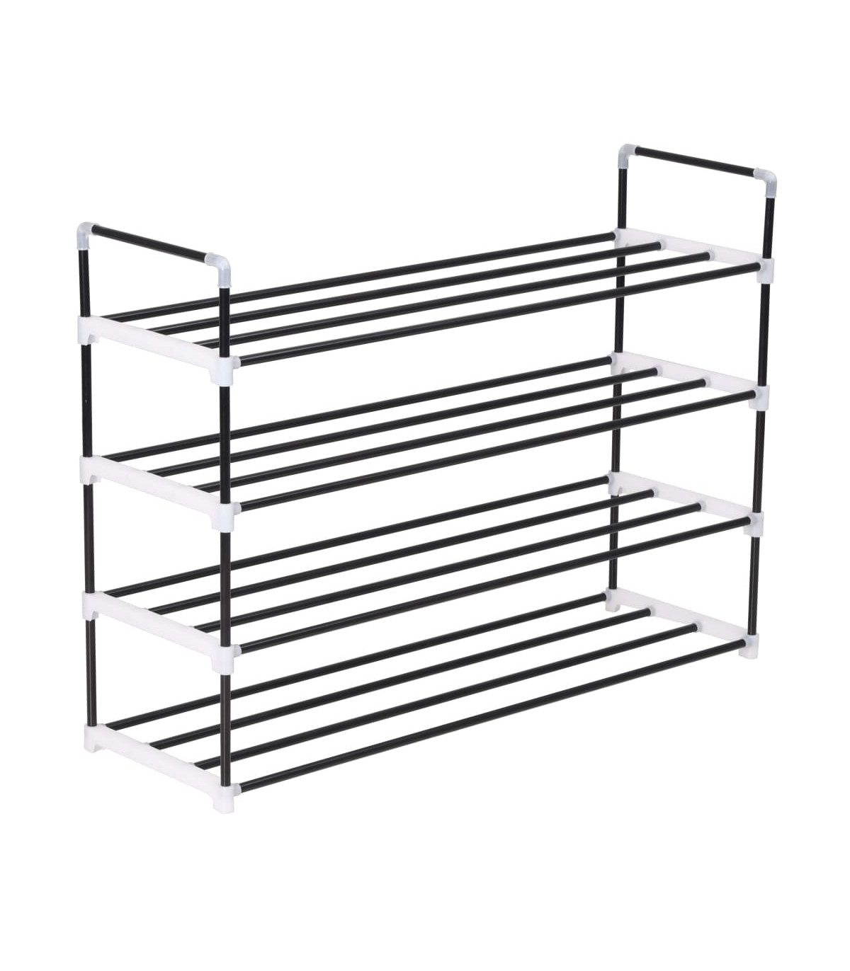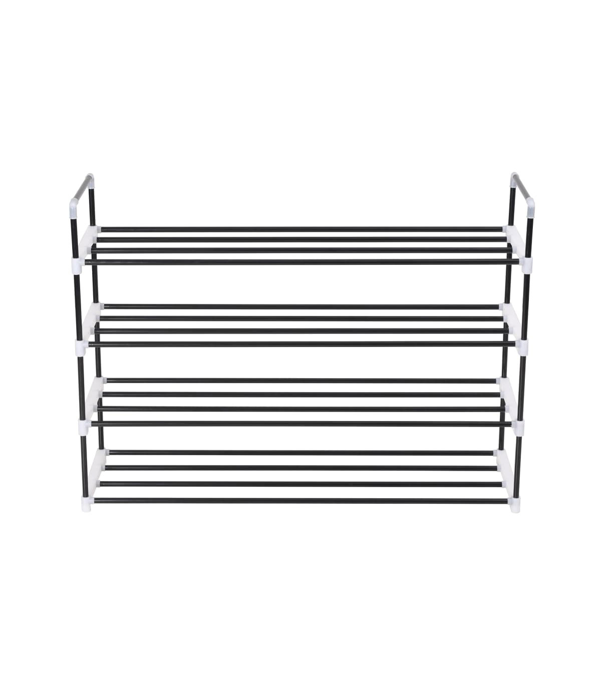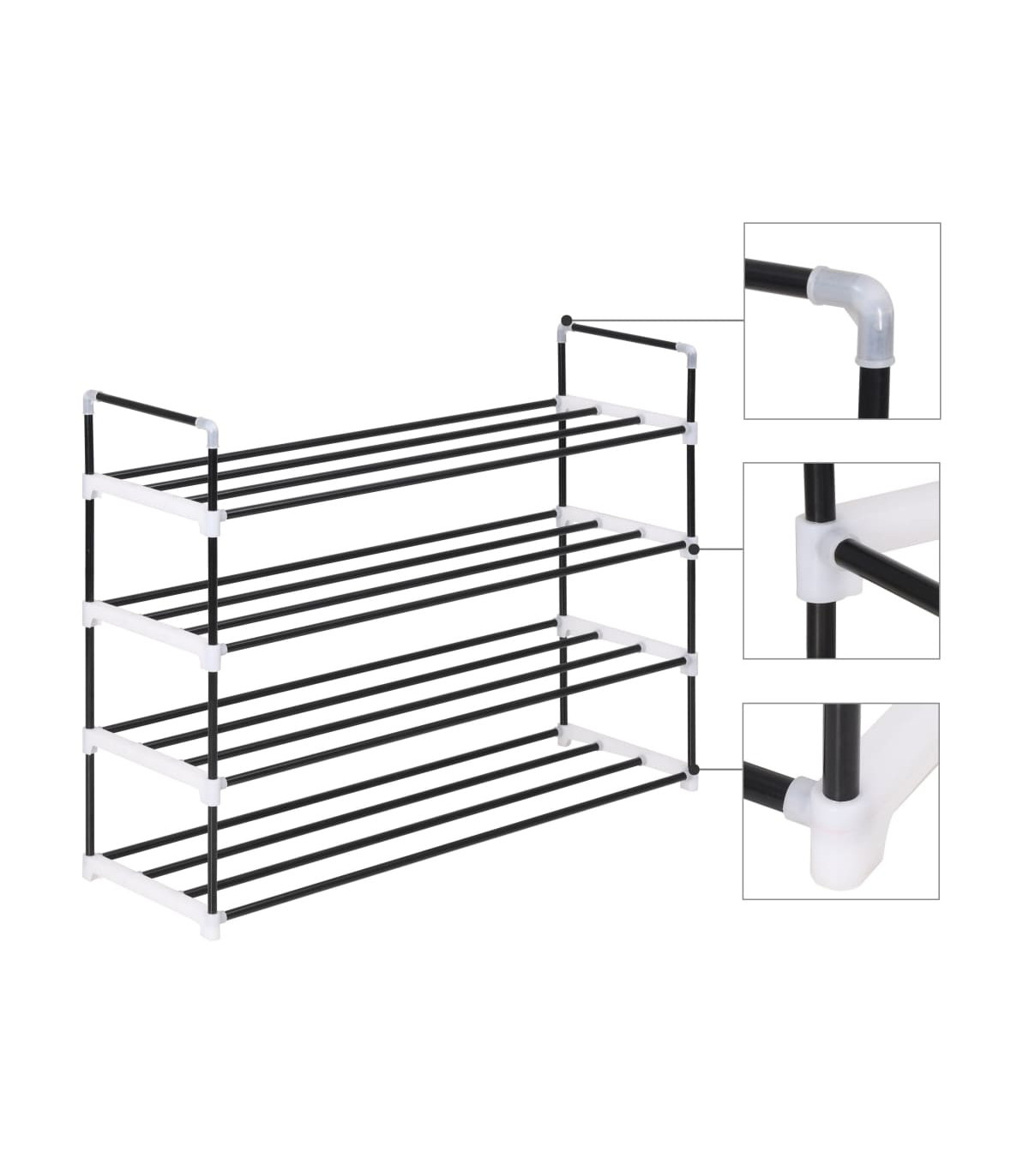Shoe Rack with 4 Shelves Metal and Plastic Black