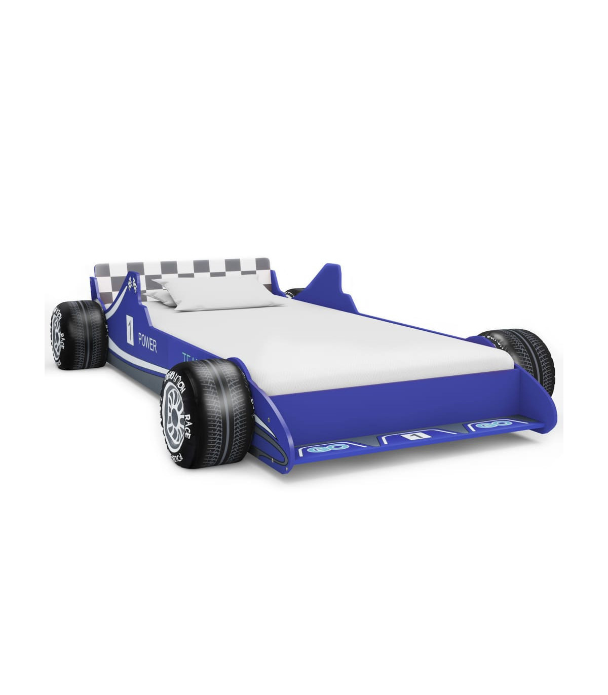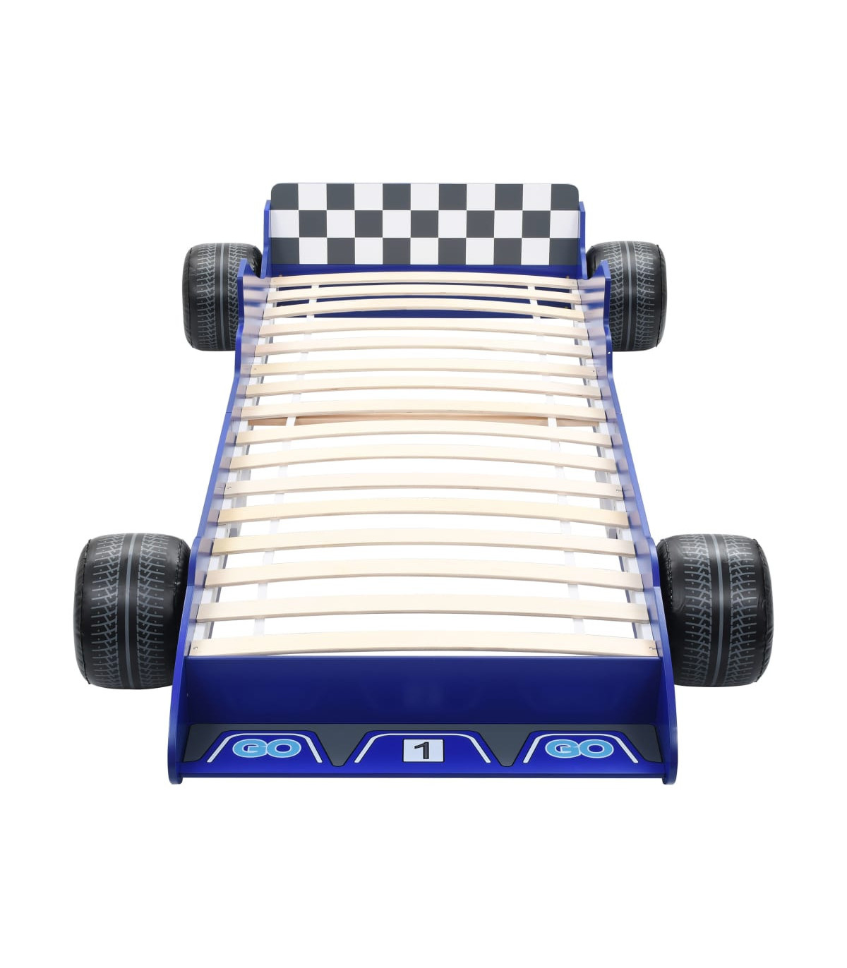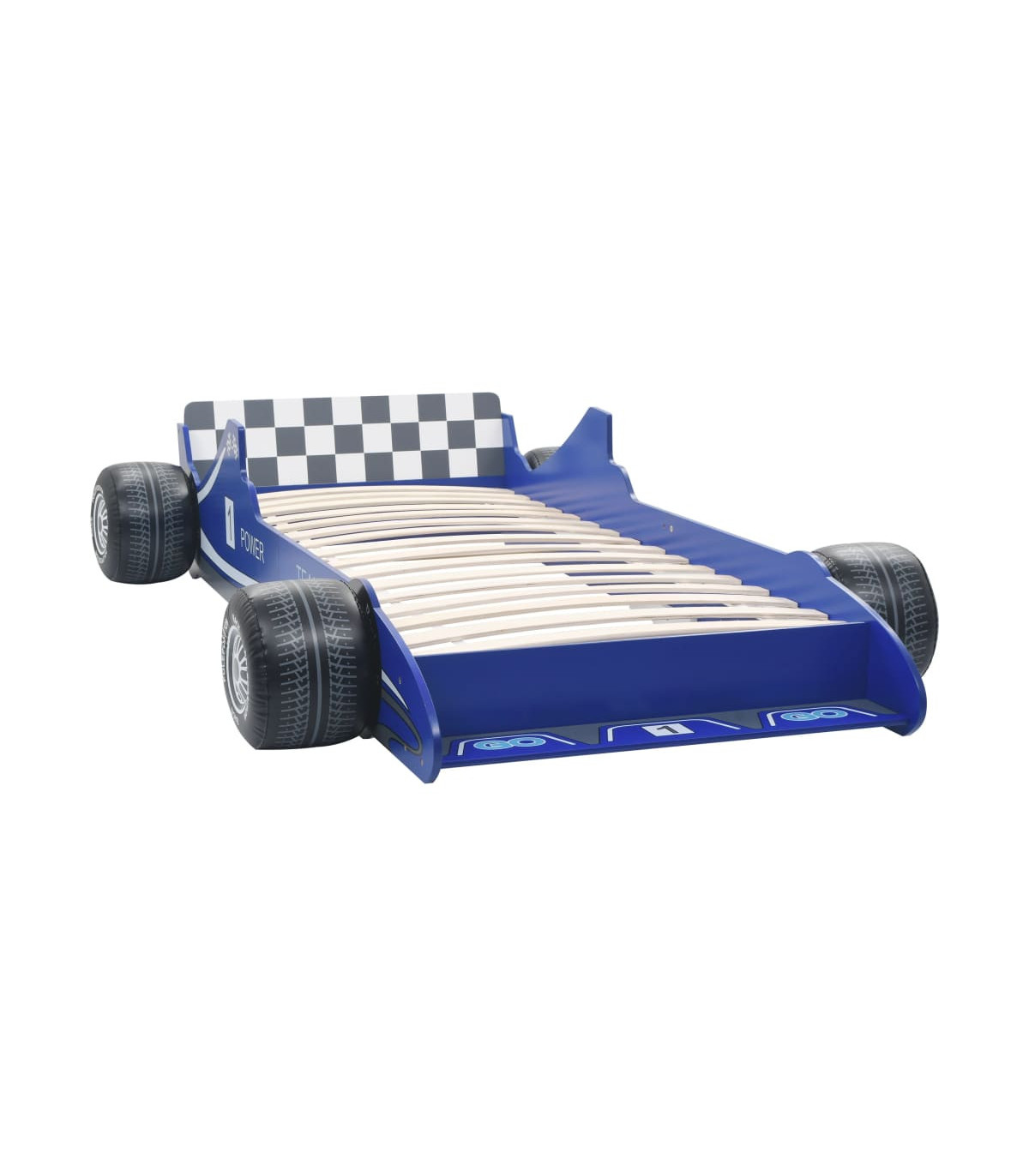 Featuring an appealing race car design and solid construction, this children's bed will be a real eye-catcher in your kid's bedroom. Comfortable, functional, and aesthetically-pleasing, this bed is designed to ensure the utmost comfort and maximum safety for kids. Crafted from superior materials, this bed is characterised by a strong and robust construction. It is designed with rails on both sides to prevent your child from falling out of the bed. Additionally, the sturdy slats offer the needed support and can withstand daily wear and tear. The bed is suitable for mattresses measuring 90 x 200 cm. The bed frame is easy to assemble. Please note the delivery includes the bed frame only; a mattress is not included.