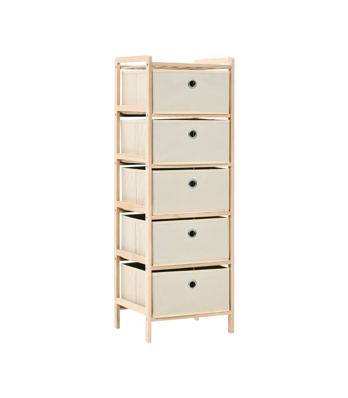 - Material: Cedar wood frame and fabric baskets