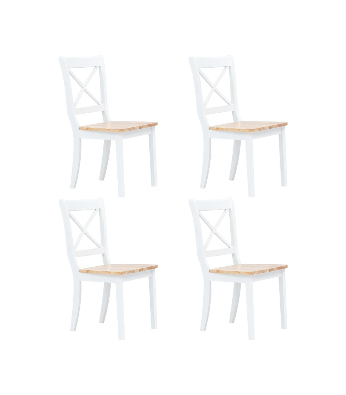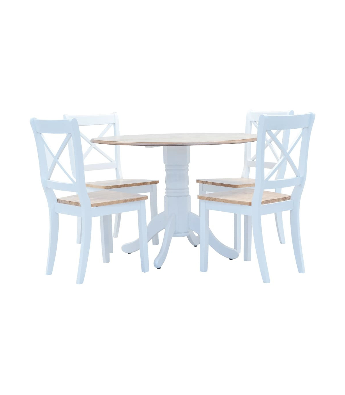 Designed with stylish lines, this wooden dining set will be a great choice for your dining room or kitchen. The table frame and chairs are made of solid rubber wood, enabling them exceedingly durable and hardwearing. The table top is made of MDF, which provides a stable place for you to have meals. Additionally, thanks to the polished, painted and lacquered finish, the dinner set is easy to clean with a damp cloth. The simple elegance of this dining set will make everyday dinners special. Delivery includes 1 table and 4 chairs.