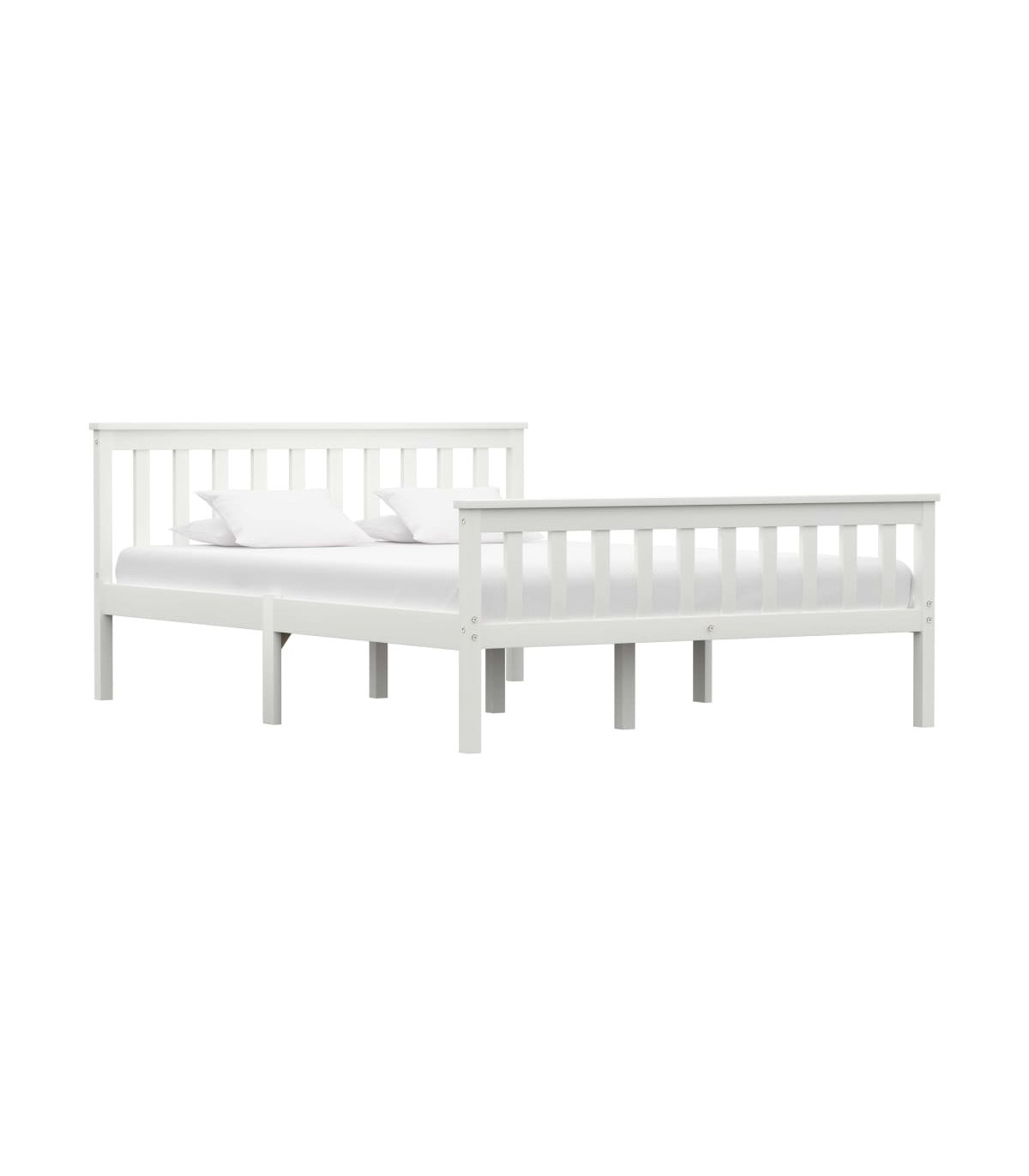 Bed Frame White Solid Pinewood 135 x 190 cm