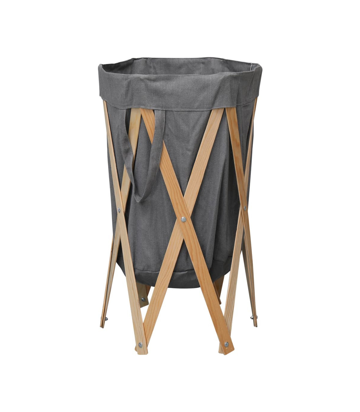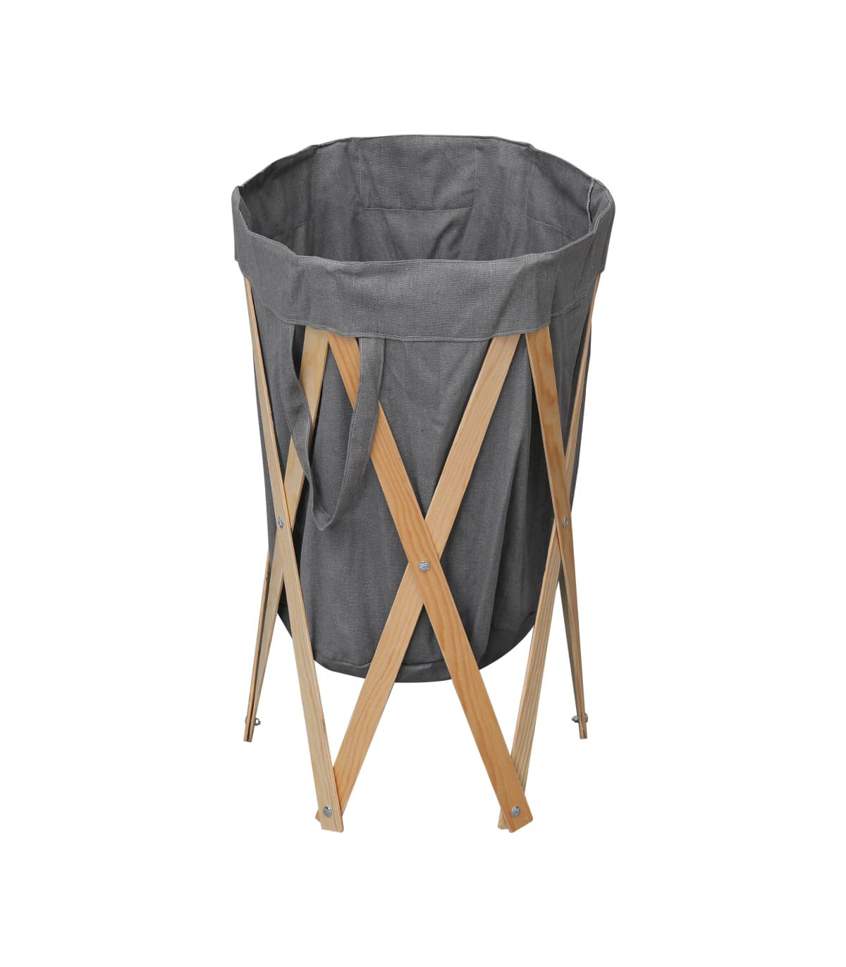 Folding Laundry Basket Grey Wood and Fabric