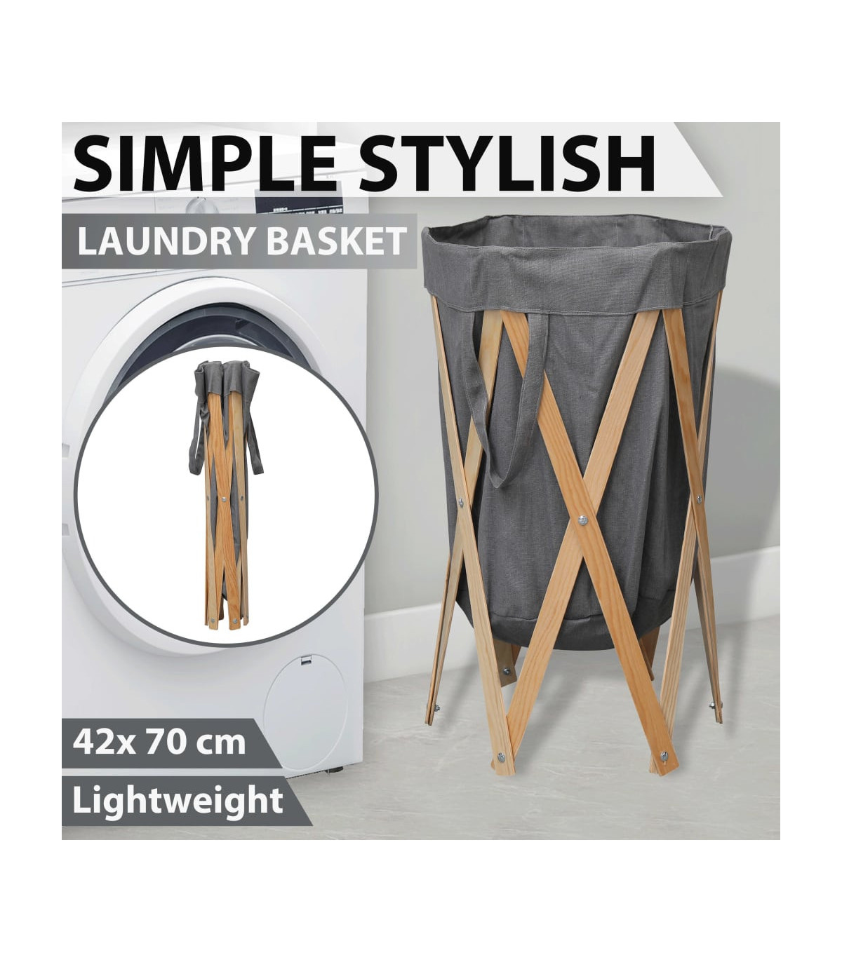With our laundry basket, you will have a designated spot to neatly store items and keep your family and living spaces organised and clean! Our laundry bin has a strong and stable wood frame with a fabric bag. The fabric bag is lightweight, hardwearing, removable and easy to wash. The rack can be easily folded flat for slim and compact storage when not in use. This laundry basket is already assembled, no assembly is required.