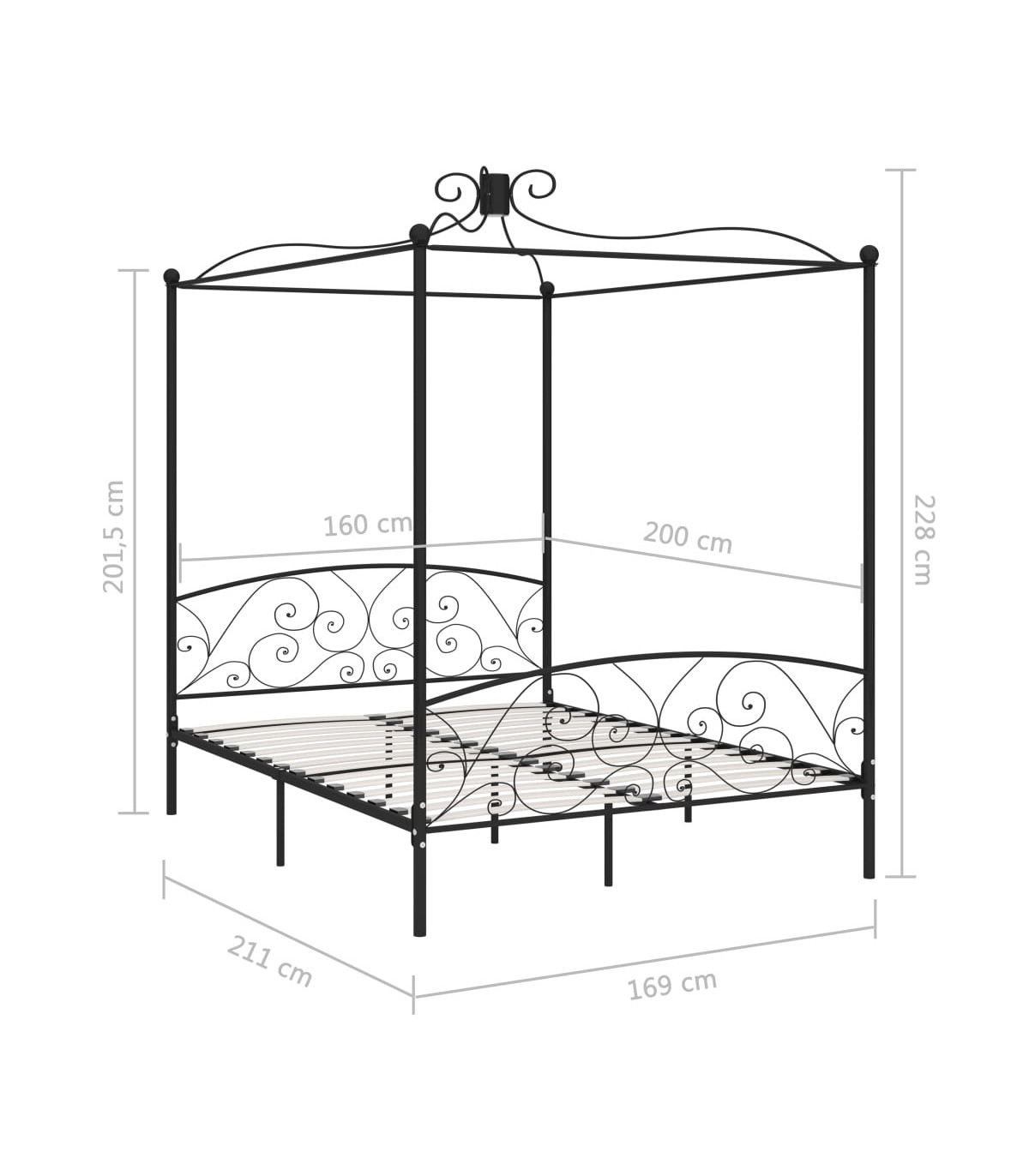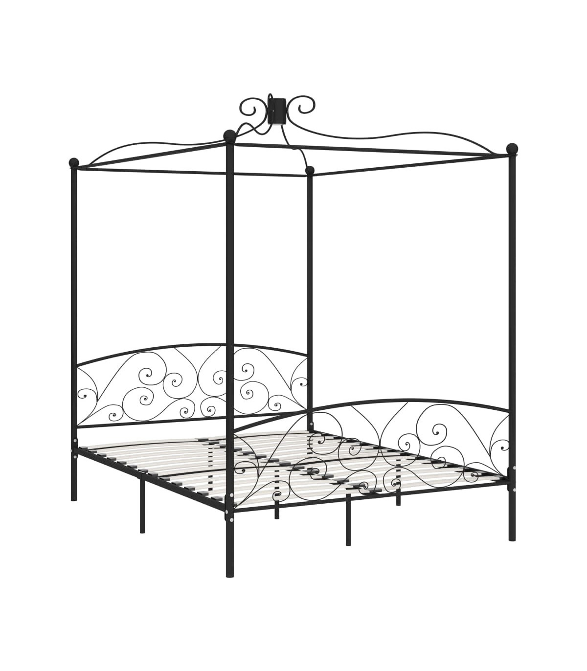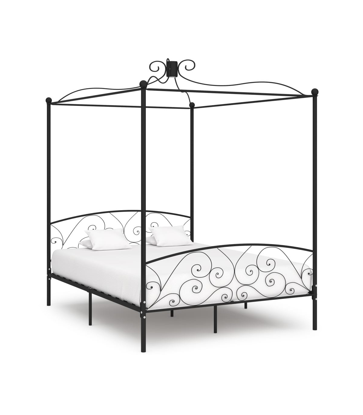 Create an elegant and classic look in your bedroom with our metal canopy bed frame! The bed is smartly designed with a top frame for hanging your favourite curtains or mosquito net, which adds a unique charm to your bedroom, while creating extra privacy. Made of solid metal, this bed frame is exceedingly sturdy and durable. With all these combined features, you will certainly have a good night's sleep! The bed frame needs assembly. Please note that the delivery includes a bed frame with a slatted base. A mattress is not included. You can check our shop for the matching mattresses.