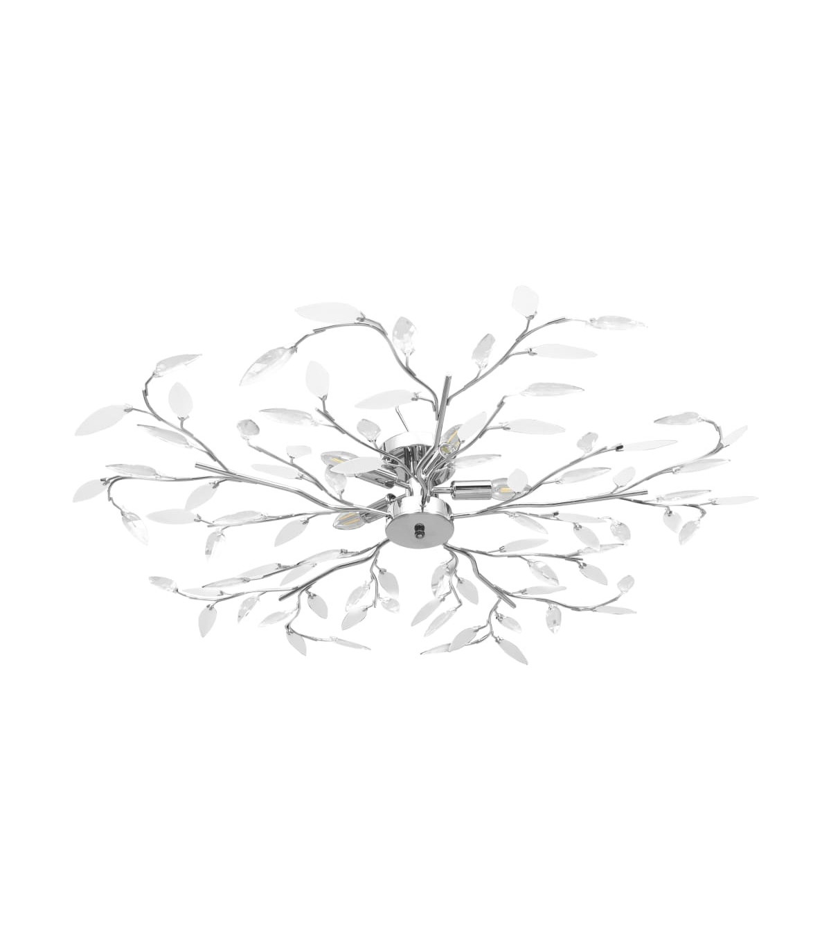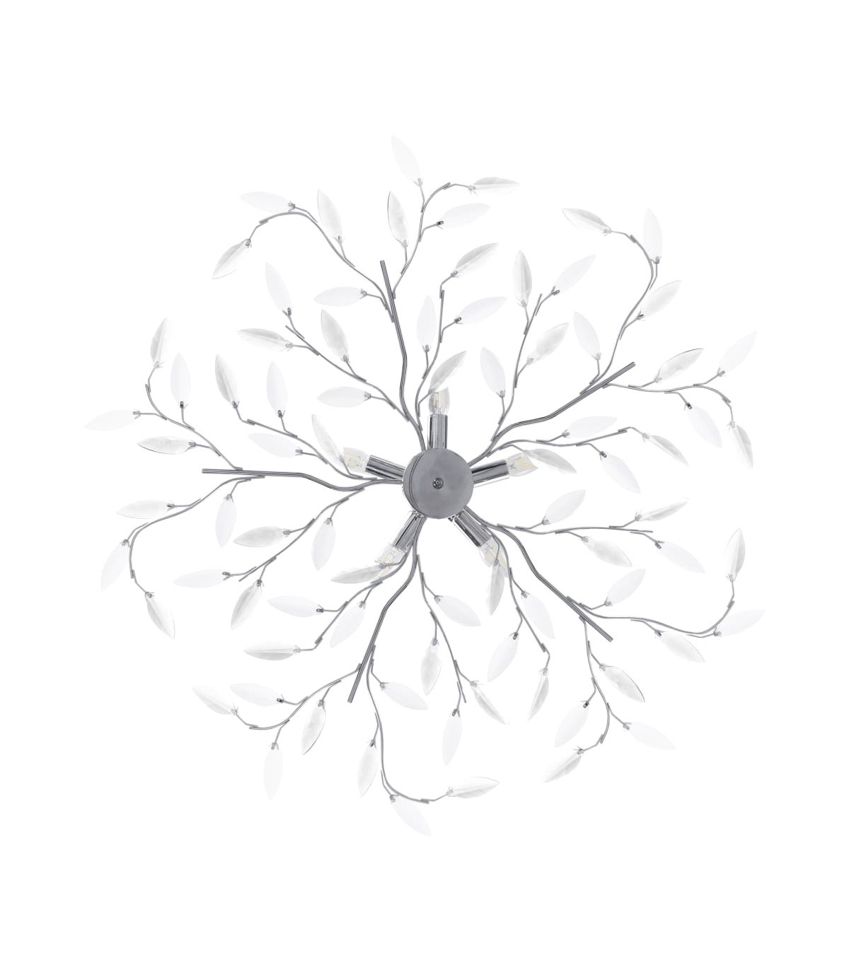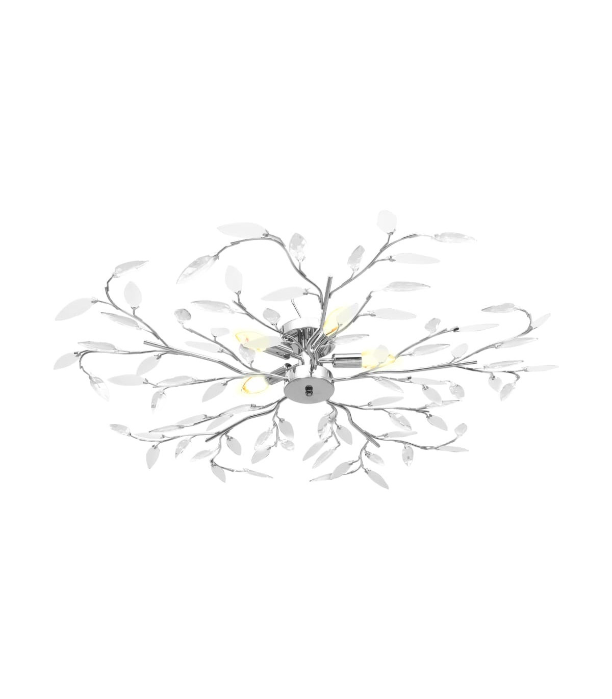 This exclusive ceiling lamp is guaranteed to be distinguished by its pleasing simplicity, which will be a great choice for adorning your living room or bedroom. This lamp can be easily mounted on any ceiling with a durable metal base. The satin chromed finishing gives this lamp a contemporary style. The leaf-shape design completes its modern look. The light reflecting on those acrylic leaves presents an unique illumination for your home. In addition, acrylic material is easy to clean with a damp cloth. This item can be assembled with ease.
