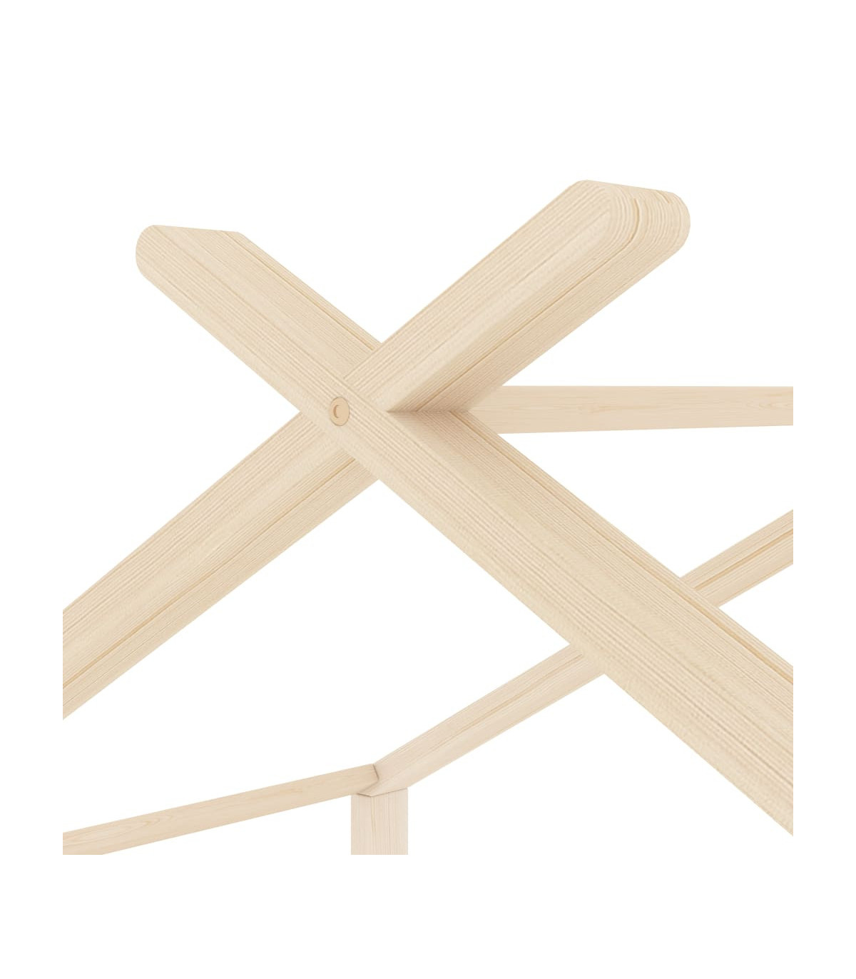 Create the ultimate hideaway in your children's bedroom with our fantastic wooden bed frame! The bed is smartly designed with a treehouse-style frame where you can hang bed curtains to create privacy for your kid. This wooden bed is also perfect as a reading nook or a playhouse for your child. This bed frame is made of solid pine wood, making it exceedingly sturdy and durable. The strong slats offer the needed support to ensure stability. This bed frame is suitable for a mattress of 70 x 140 cm. Please note: The delivery includes a bed frame only. Mattress and curtains are not included. You can check our shop for the comparable mattresses.