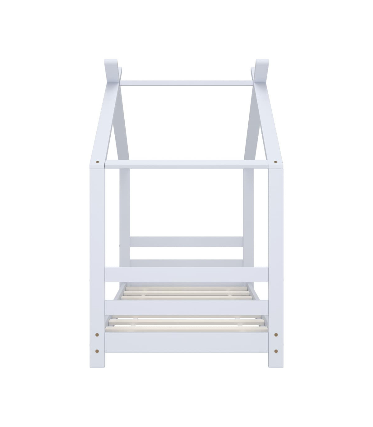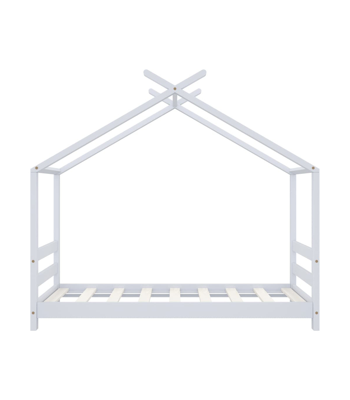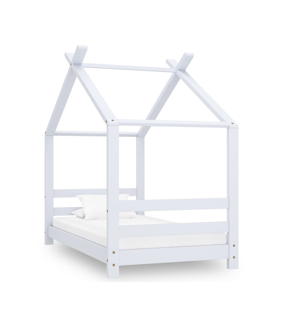 Create the ultimate hideaway in your children's bedroom with our fantastic wooden bed frame! The bed is smartly designed with a treehouse-style frame where you can hang bed curtains to create privacy for your kid. This wooden bed is also perfect as a reading nook or a playhouse for your child. This bed frame is made of solid pine wood, making it exceedingly sturdy and durable. The strong slats offer the needed support to ensure stability. This bed frame is suitable for a mattress of 70 x 140 cm. Please note: The delivery includes a bed frame only. Mattress and curtains are not included. You can check our shop for the comparable mattresses.