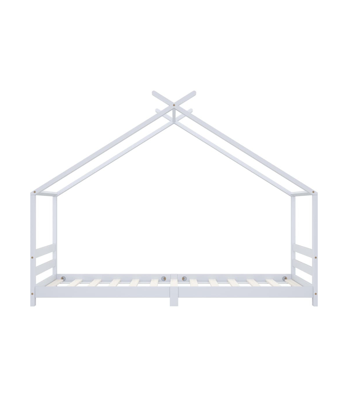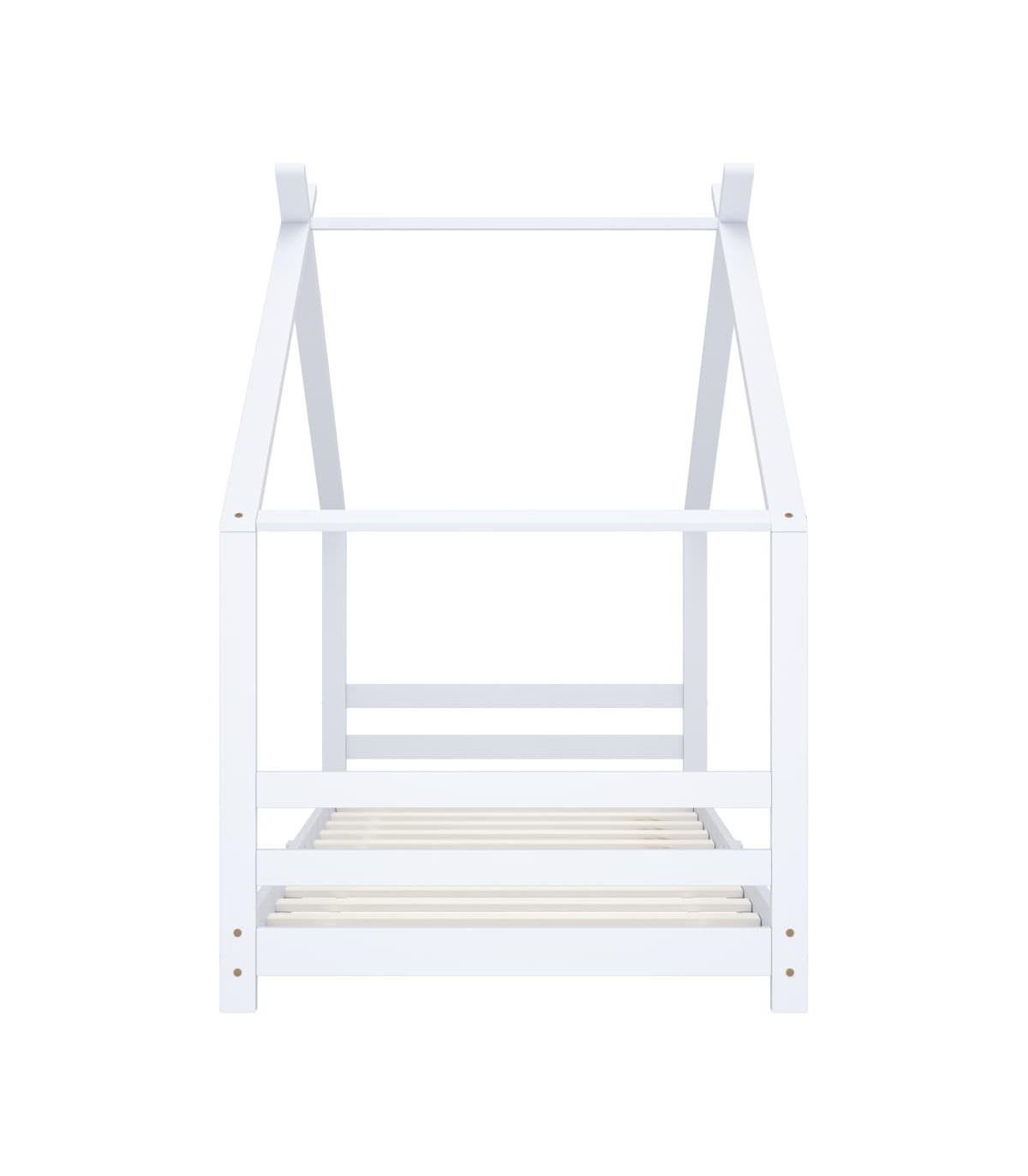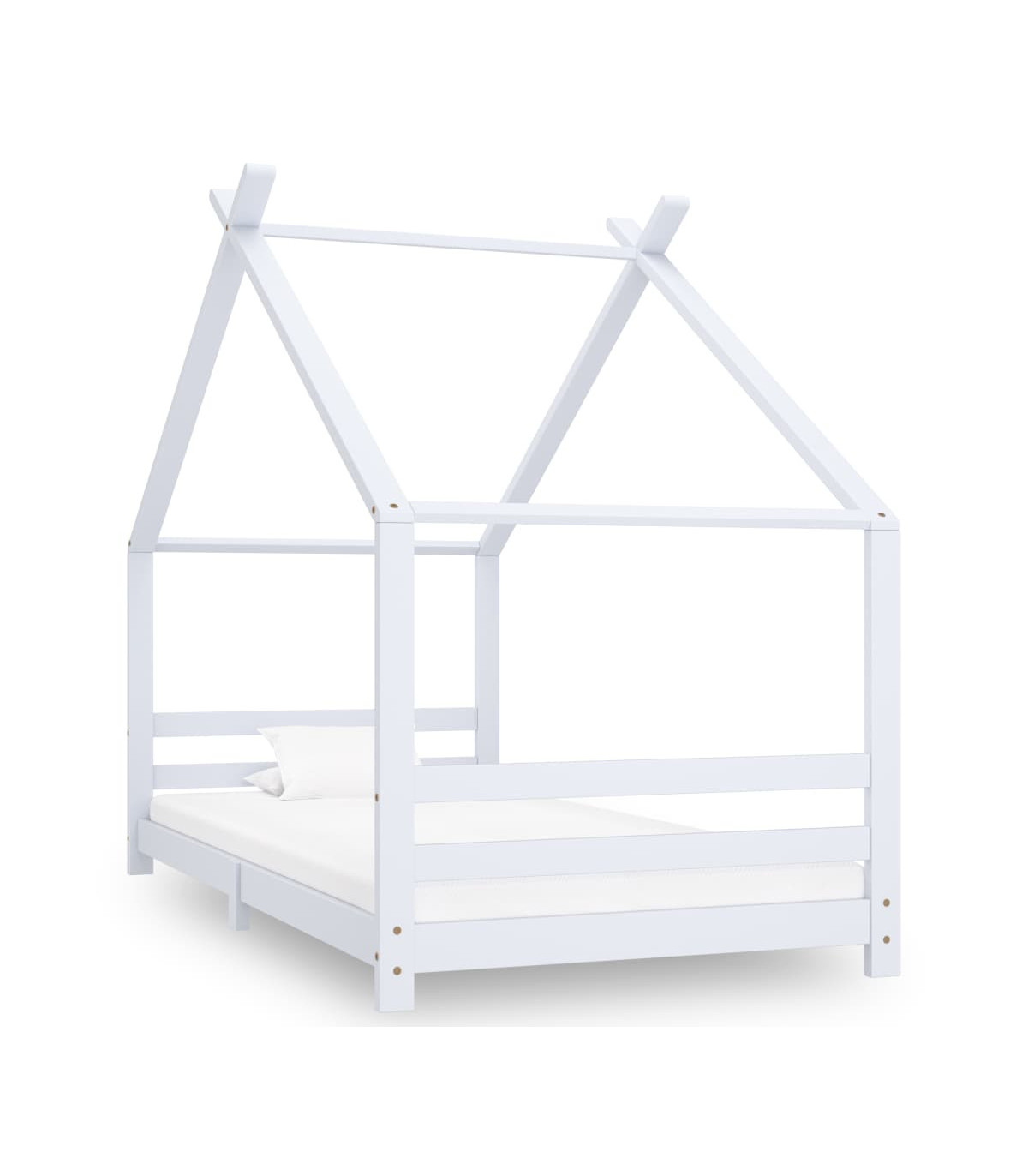 Create the ultimate hideaway in your children's bedroom with our fantastic wooden bed frame! The bed is smartly designed with a treehouse-style frame where you can hang bed curtains to create privacy for your kid. This wooden bed is also perfect as a reading nook or a playhouse for your child. This bed frame is made of solid pine wood, making it exceedingly sturdy and durable. The strong slats offer the needed support to ensure stability. This bed frame is suitable for a mattress of 70 x 140 cm. Please note: The delivery includes a bed frame only. Mattress and curtains are not included. You can check our shop for the comparable mattresses.