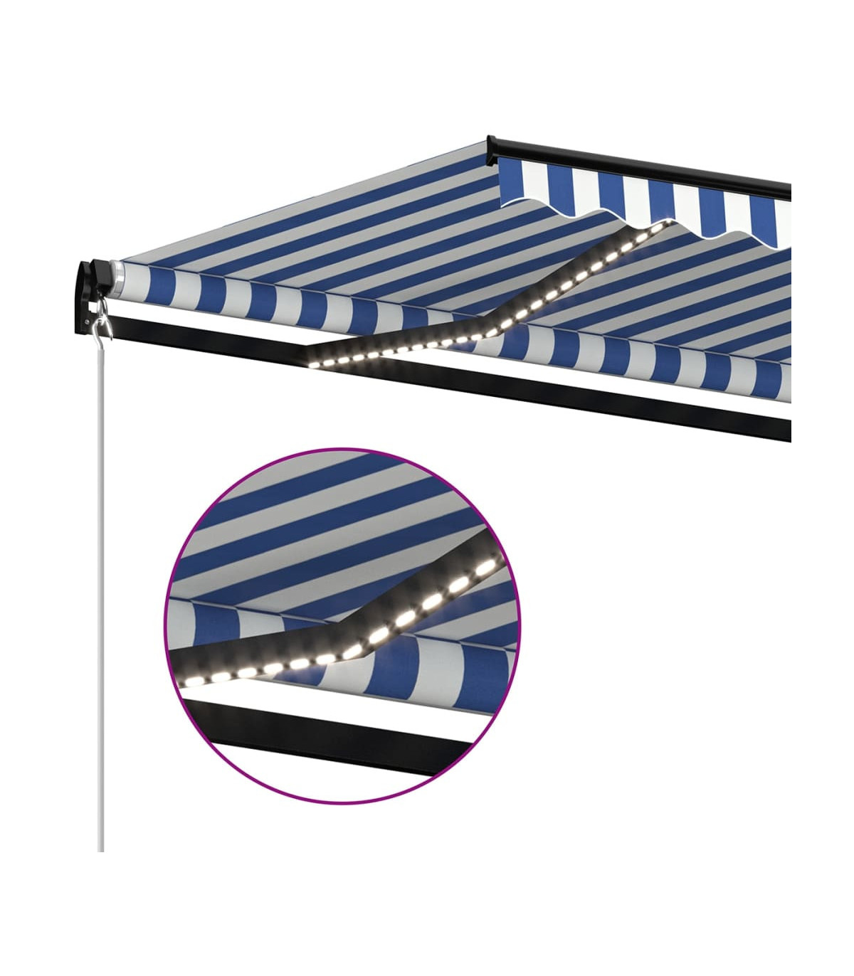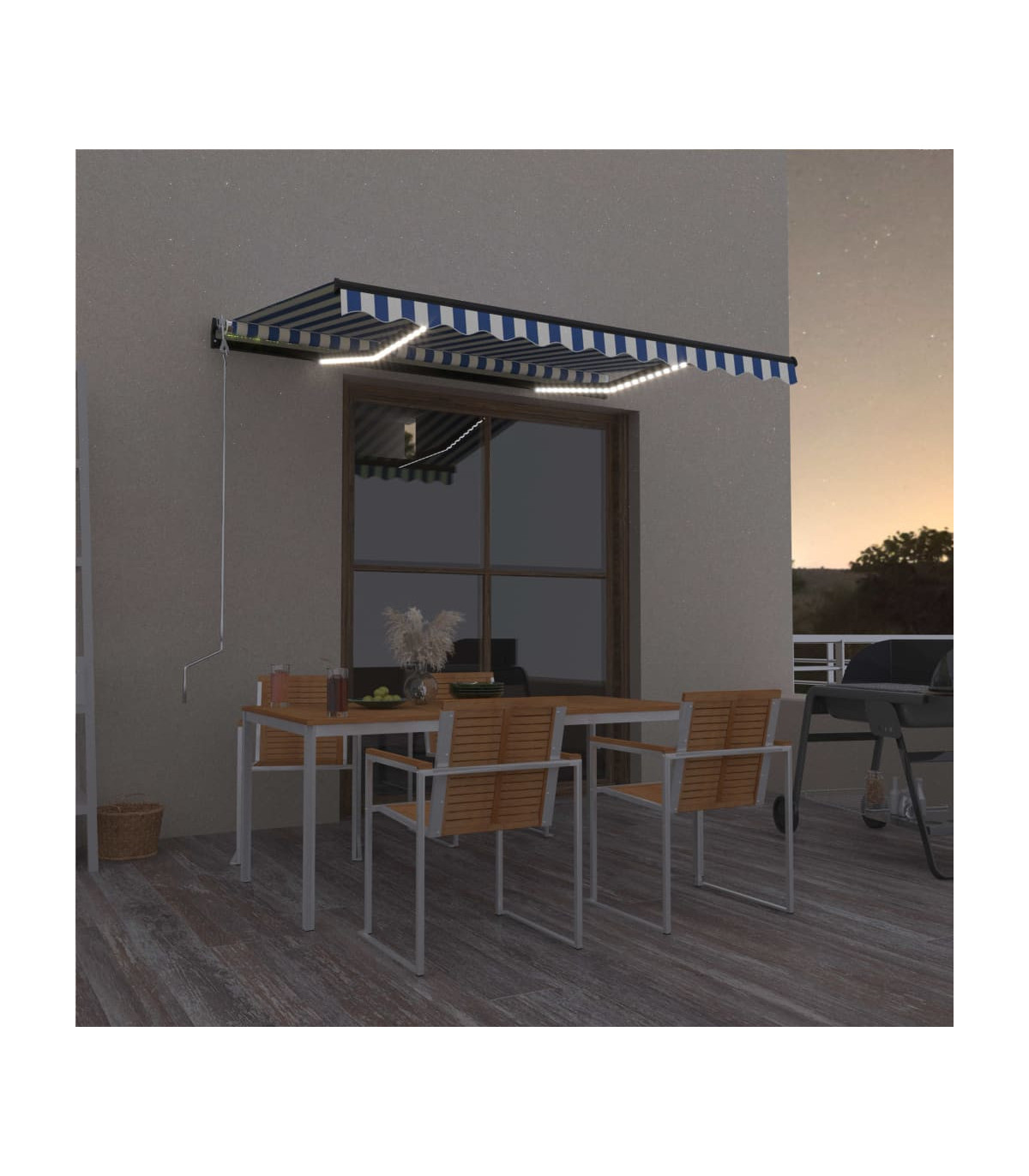 Manual Retractable Awning with LED 400x300 cm Blue and White