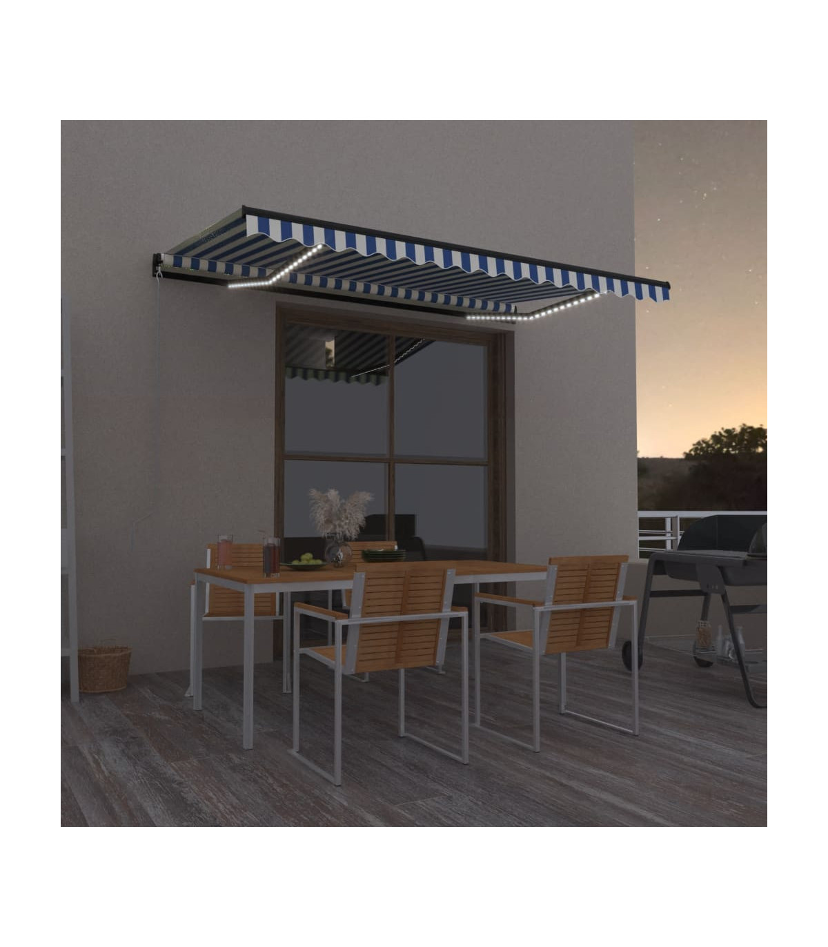 Manual Retractable Awning with LED 450x300 cm Blue and White