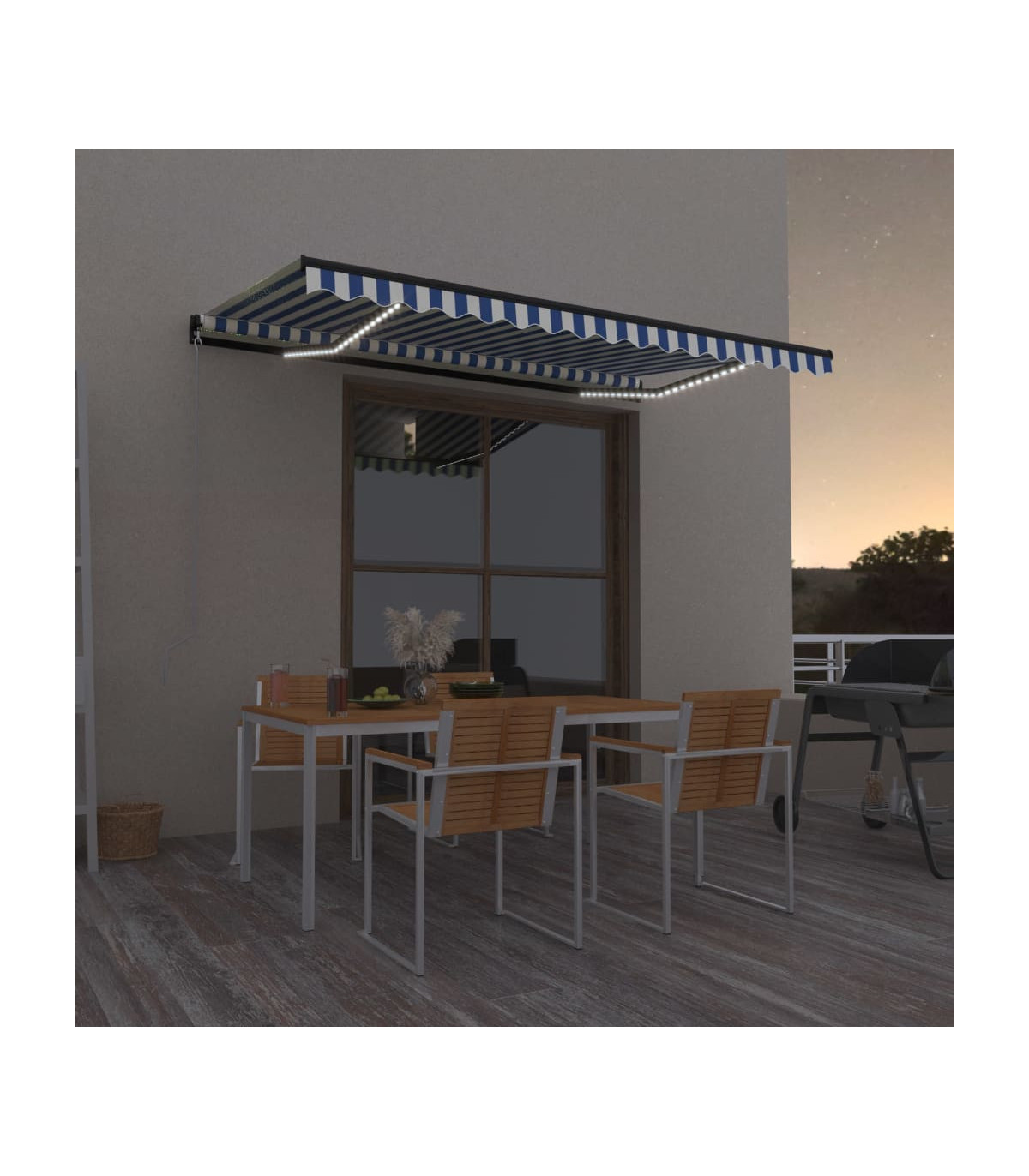 vidaXL Manual Retractable Awning with LED 400x350 cm Blue and White