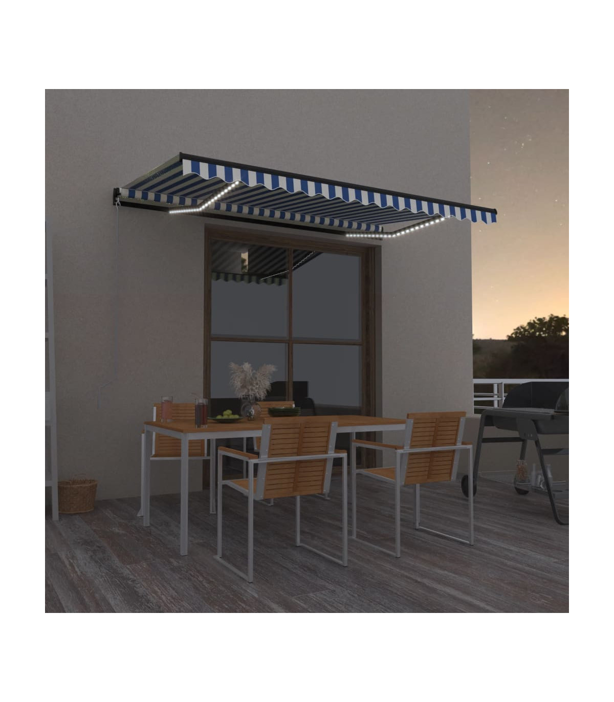 vidaXL Manual Retractable Awning with LED 450x350 cm Blue and White