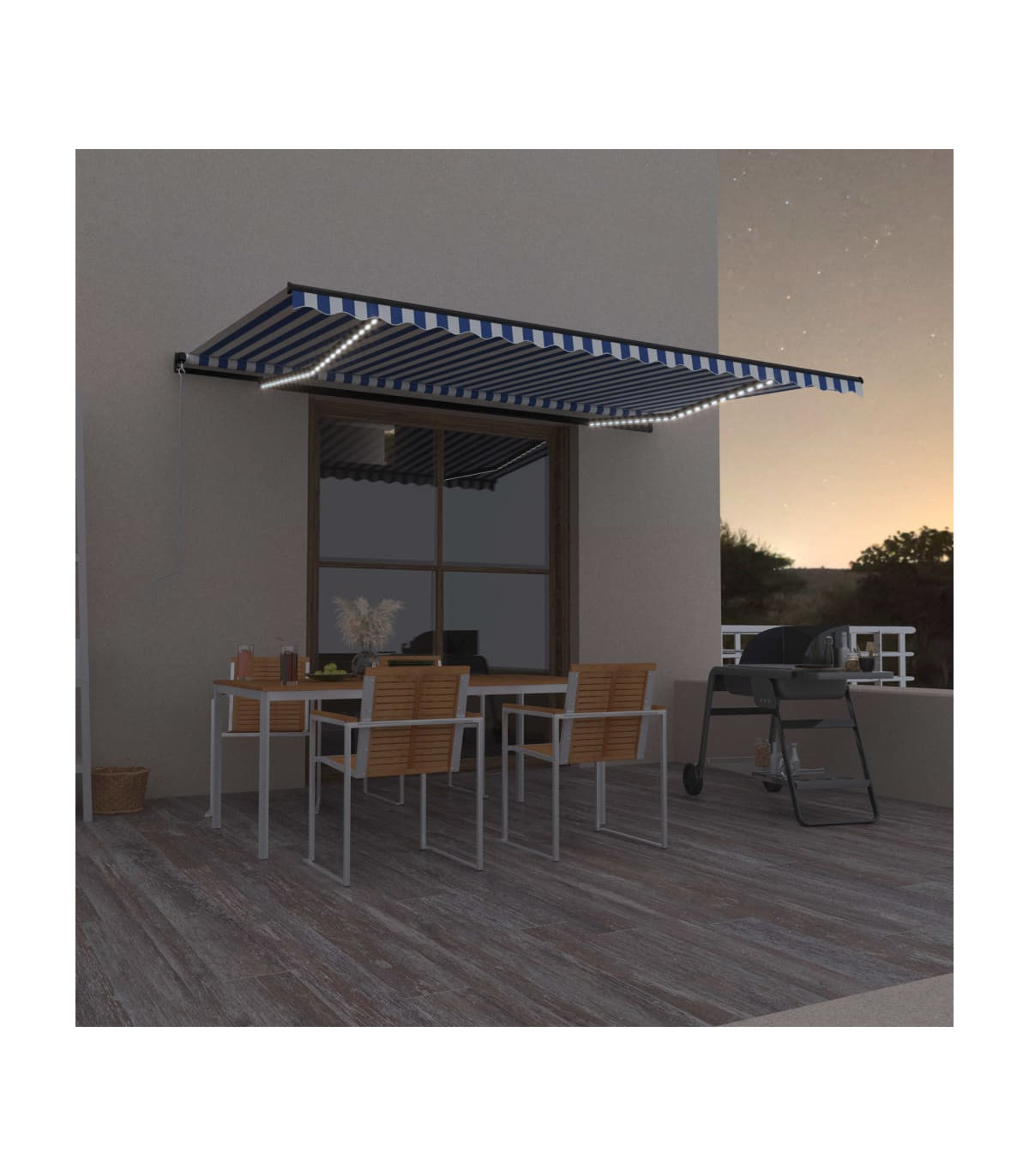 vidaXL Manual Retractable Awning with LED 500x350 cm Blue and White