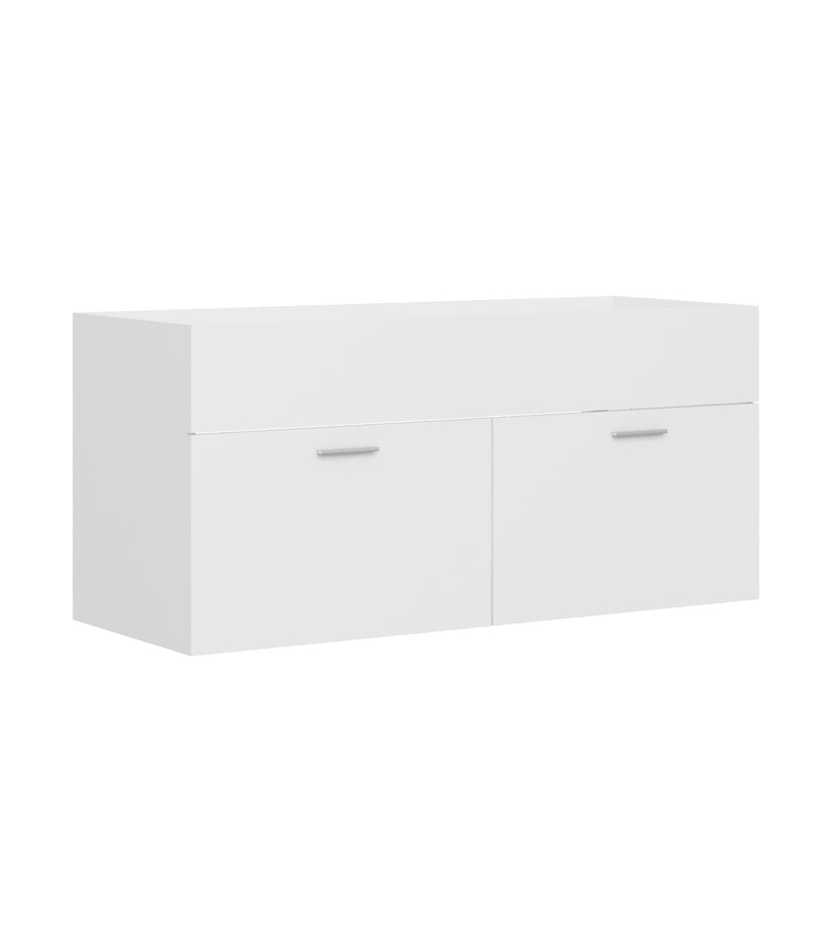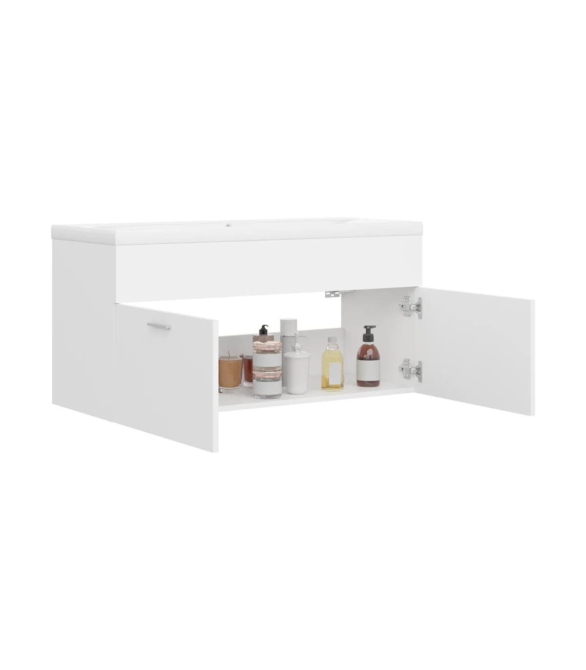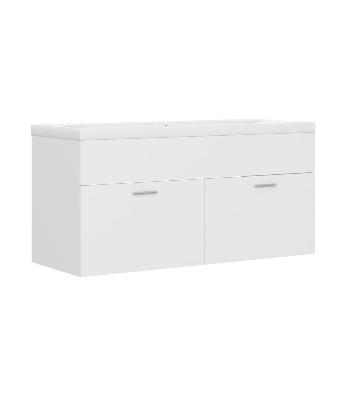This sink cabinet with a built-in basin is a perfect match for your bathroom or washroom with a striking, tidy appearance. The cabinet is made of board, making it sturdy and stable. The storage cabinet has 1 compartment and 2 doors, offering ample space to store items. It fits perfectly under the sink and makes bathroom storage quite convenient. Made of ceramic, the basin can not only serve as a vessel for daily use but also as an adornment in your living space. Thanks to its trendsetting and contemporary design, this washbasin will definitely suit any decor. An overflow is also equipped to flow water out when it gets too full. Its glazed surface brings itself a modern yet elegant design. Additionally, the cabinet and basin are easy to clean with a damp cloth. Please note: The tap and the drain are not included in the delivery.