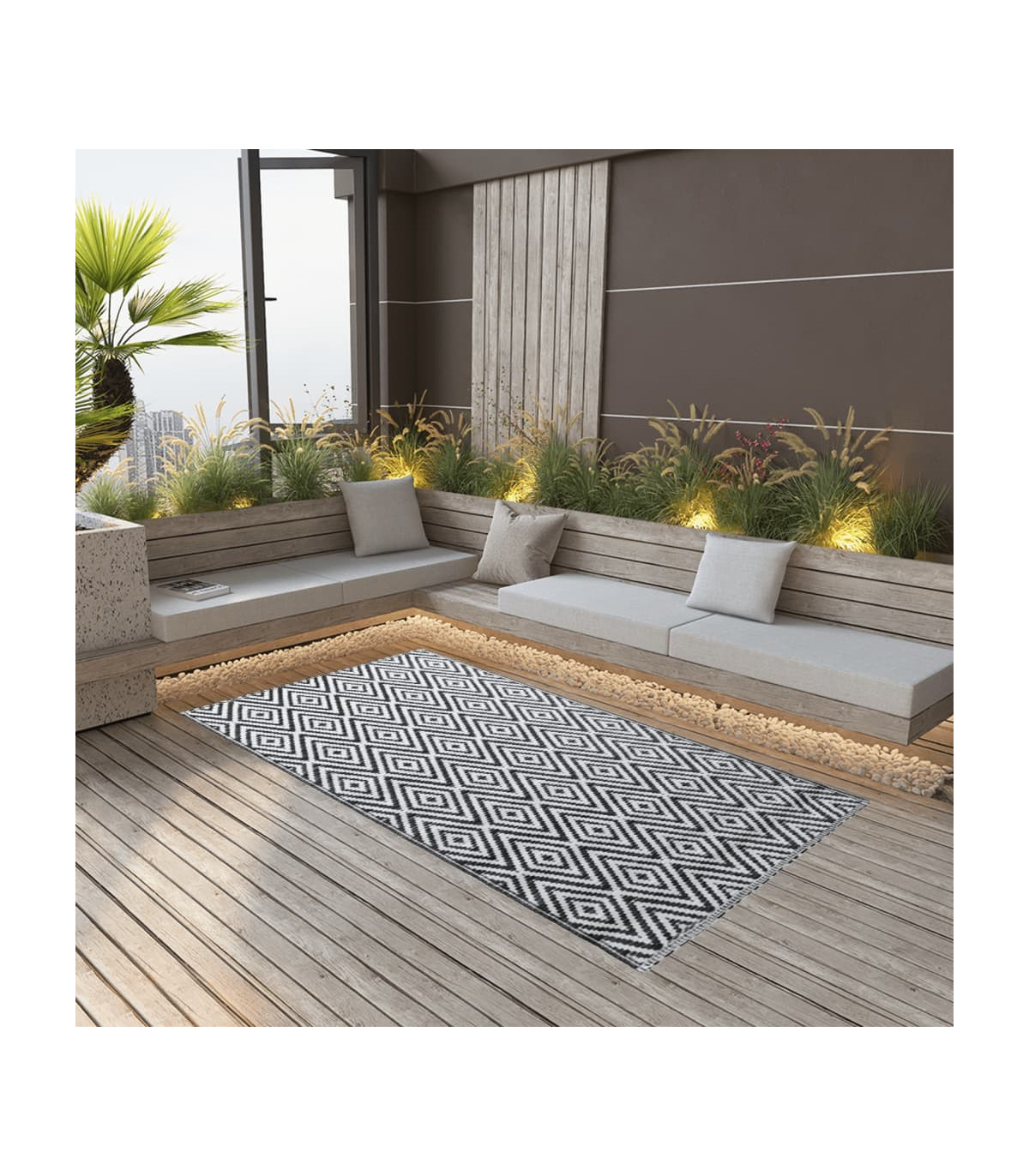 This trendy outdoor carpet makes a great decorative addition to your outdoor living space! Place it in your seating area on your balcony, terrace and patio to instantly make it feel more homely. Long-lasting and UV-resistant: Made of Polypropylene (PP), this rug is tightly woven for durability, portability and low maintenance. And it‘s UV-resistant, which prevents it from fading or getting other sun damage.Reversible design: Designed to be used on both sides, this garden rug has two options for you to match the decor to your liking. When one side has a stain, or you get bored with the pattern, you can replace the other side to give the ground a fresh look.Easy to clean: This outdoor carpet is easy to clean. Simply shake and wipe it with a damp cloth, or rinse it with a hose and air dry.Portable and easy to store: Due to the lightweight and seams in the middle, you can freely fold or unfold the carpet into an ideal shape for easily carrying and storing when not in use.Wide applications: This area rug is suitable for indoor and outdoor use, including the deck, patio, balcony, garden, terrace, etc. Good to know:For optimal durability and beauty, we suggest hand washing your outdoor rug at room temperature.