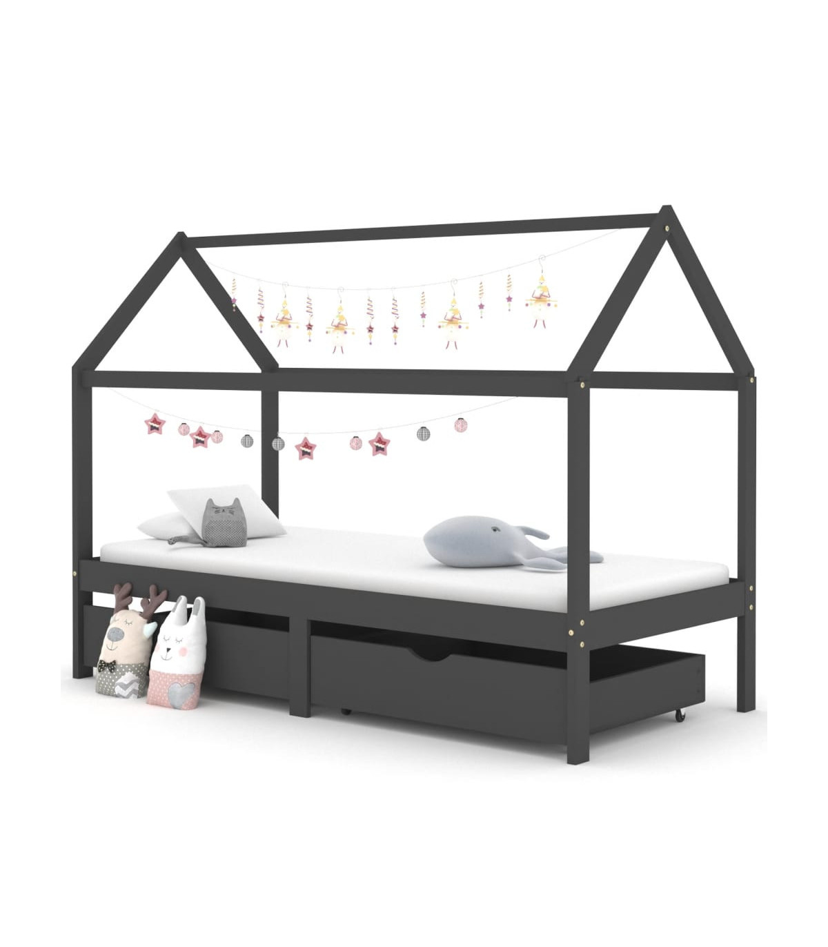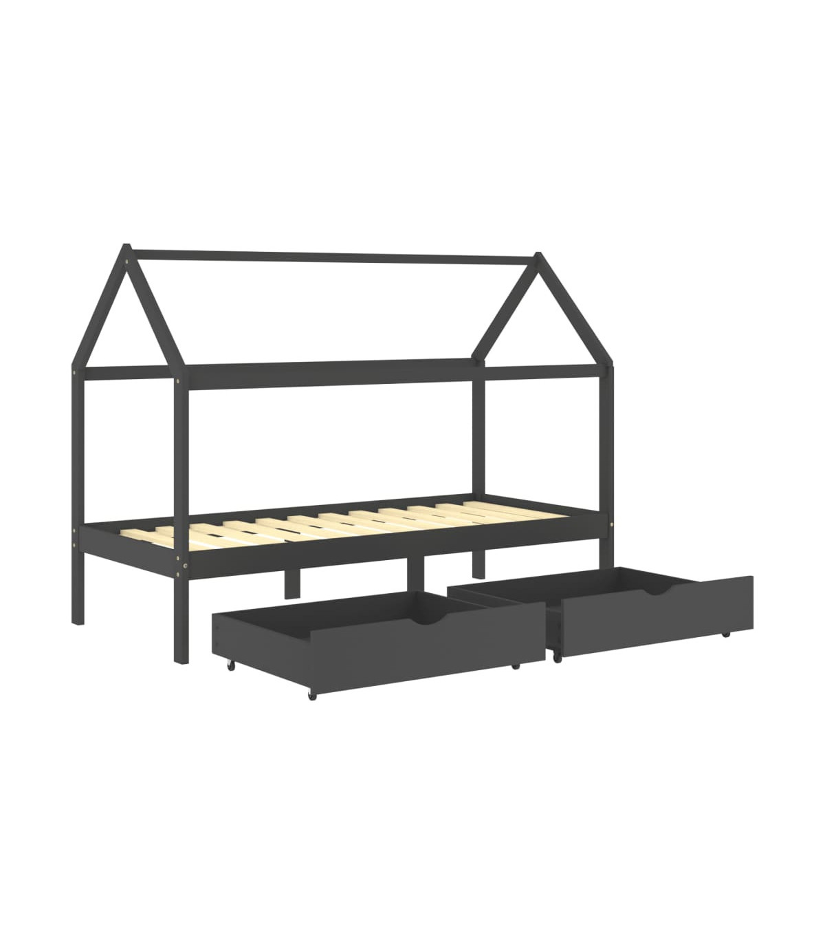 Kids Bed Frame with Drawers Dark Grey Solid Pine Wood 90x200cm