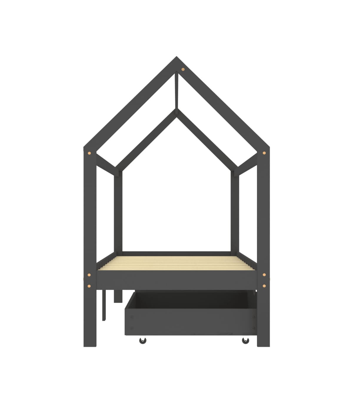 This wooden kids bed frame with a drawer is a practical and decorative addition to any bedroom decor. The bed is smartly designed with a tree house style frame where you can hang bed curtains to create privacy for your kid. It can also be used as a reading book or a play house for your child. Made of solid pine wood, this bed frame is exceedingly sturdy and durable. The strong slats offer the needed support and are highly comfortable. The included bed drawer with 2 handles provides ample storage space for storing folded clothes, toys, etc., keeping your room clean and tidy. The easy-glide wheels can work on both carpeted and wooden floors. This bed frame is suitable for a mattress of 70 x 140 cm. Please note that delivery includes a bed frame only; a mattress and curtains are not included. The bed is easy to assemble. You can check our shop for the matching mattresses.