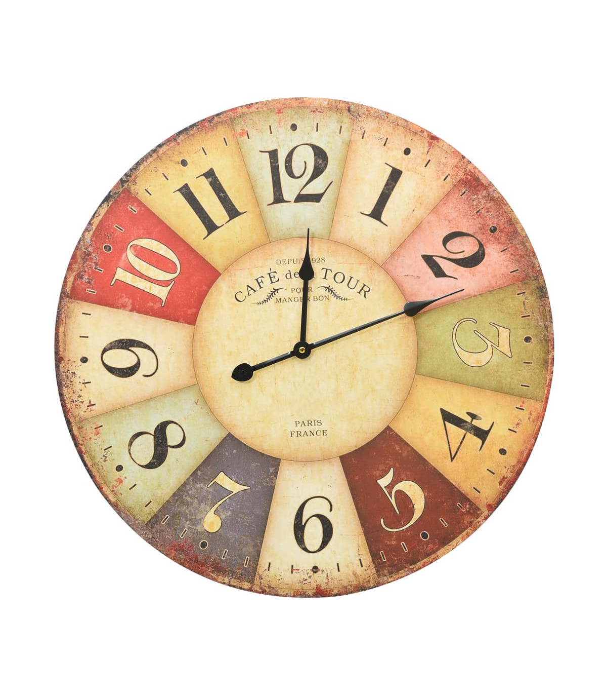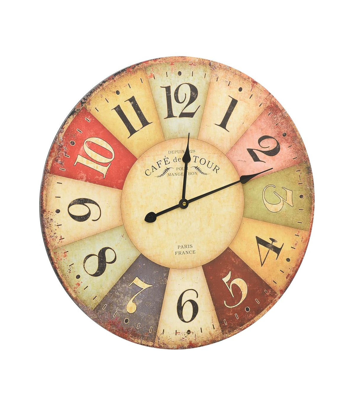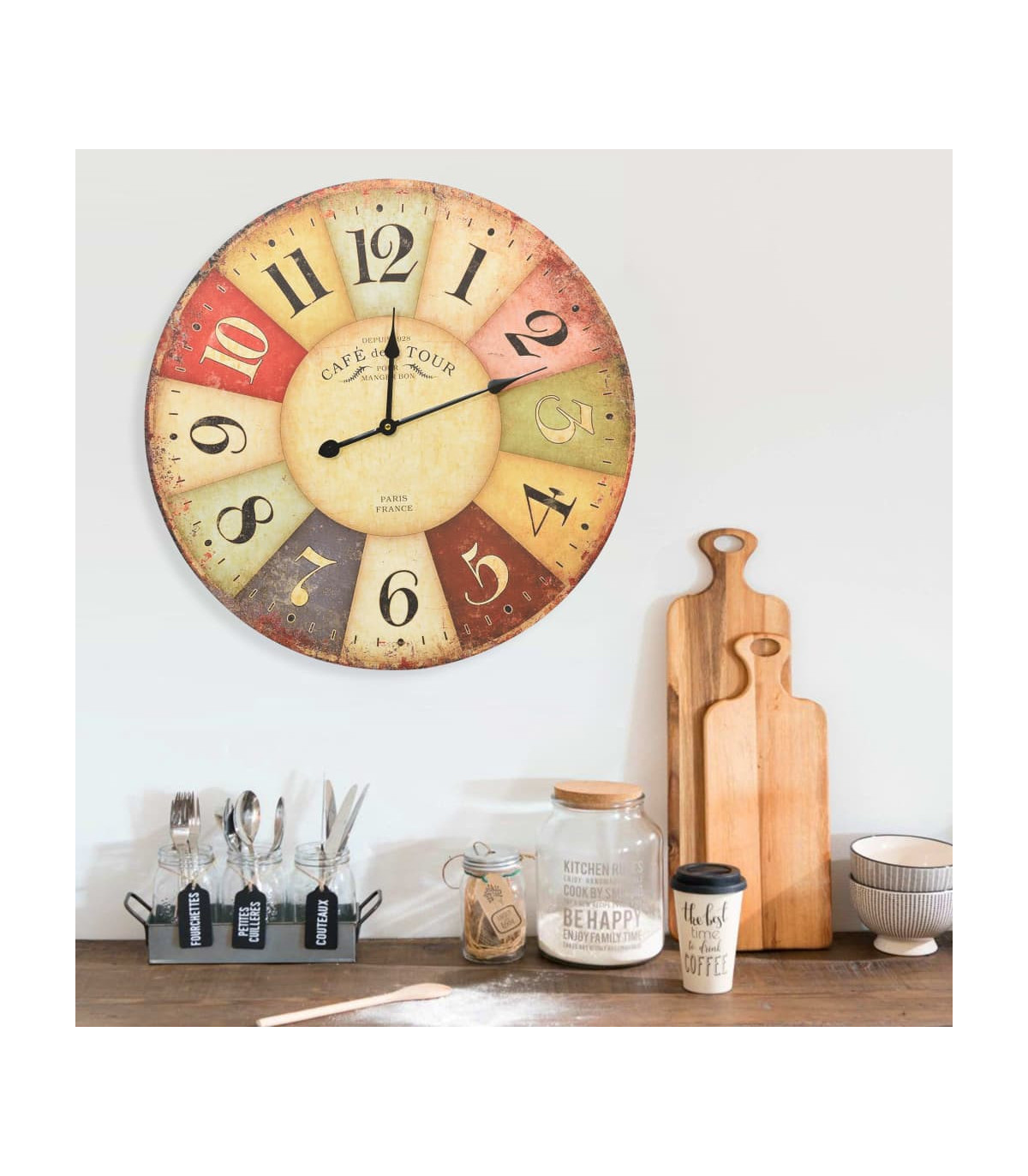 Our retro-style wall clock will make a great addition to your kitchen or living room decor! The clock has a sturdy MDF frame and is highly durable. Thanks to the large dial face and the clear numerals, the clock can be read clearly even over long distances. It can be easily hung onto the wall. The clock will add a nostalgic look to your interior.