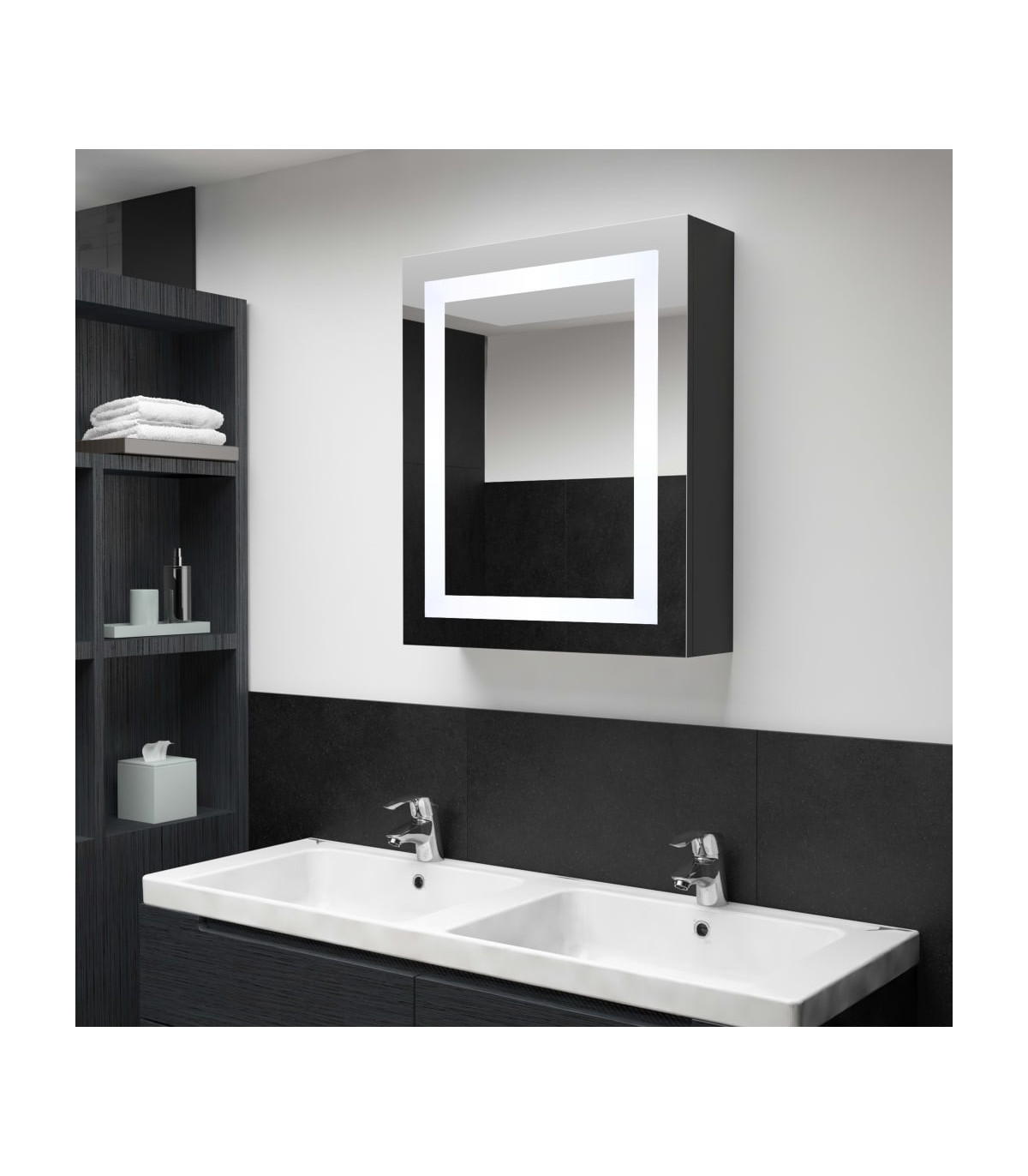 Introduce an aesthetically pleasing into your bathroom with this bathroom cabinet! The vanity mirror cabinet with LED adds a touch of contemporary style and soft illuminating light to any room! It is made of quality MDF board with melamine finish, ensuring the long term use. With energy-efficient LED light strip, you can see yourself in the truest light for makeup application, grooming and skincare, and it can illuminate your room, your face, and your smile. Inside includes 3 shelves, which provide ample cabinet storage for all of your toiletries and beauty accessories. You can easily switch on/off the light with the bottom button. Stylish and functional, this cabinet will surely make your room design originally exceptional! Note: The product has a USB connector, but the certified 5V USB power source is not included.